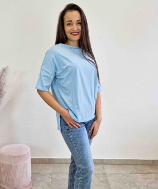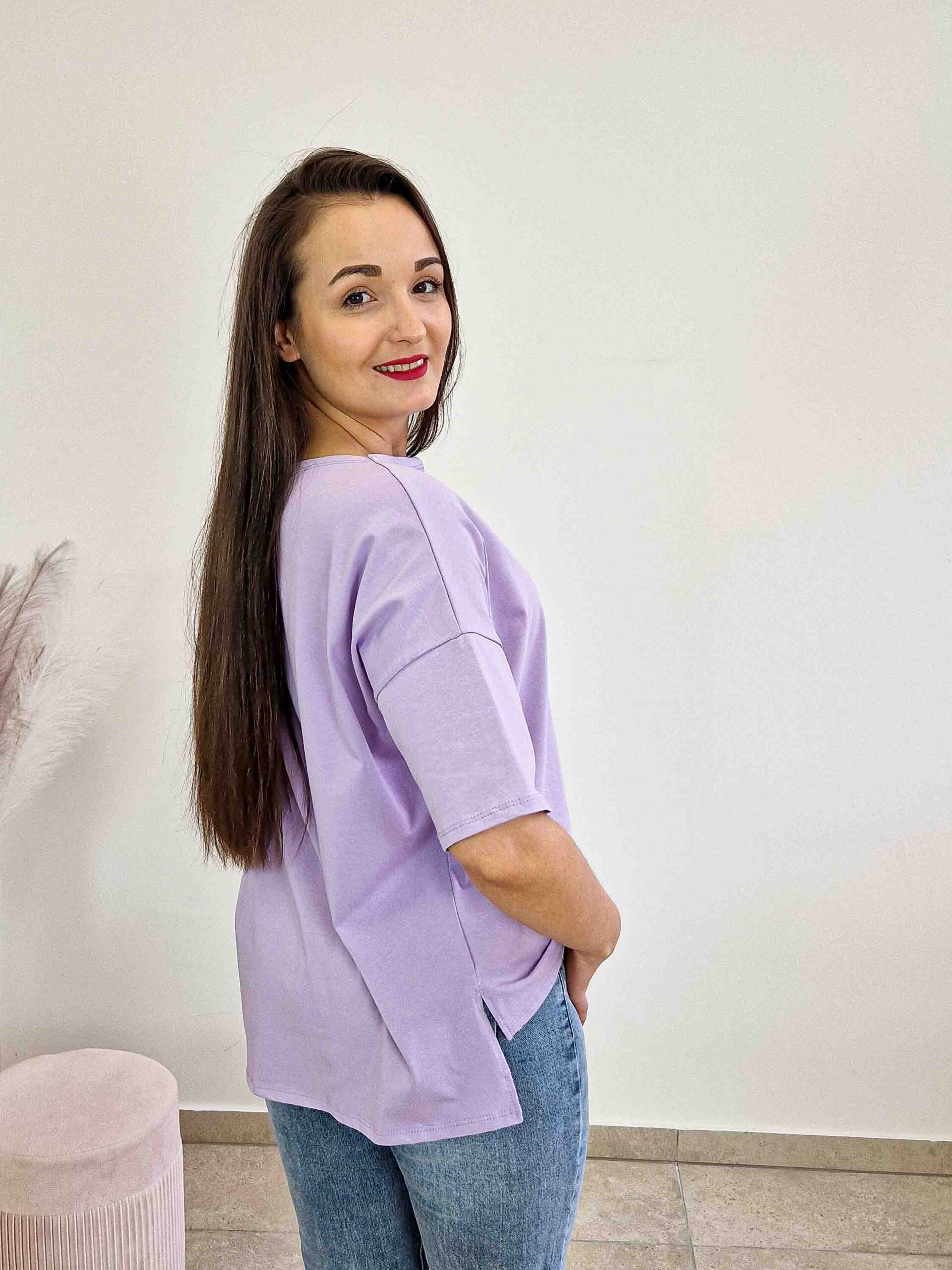 Jeśli szukasz t-shirtu, który oferuje coś więcej niż klasyczny krój, ta asymetryczna bluzka damska będzie strzałem w dziesiątkę. To doskonałe połączenie minimalizmu z funkcjonalnością. Dzięki dłuższemu tyłowi, bluzka dobrze wygląda wyciągnięta ze spodni lub legginsów, zakrywając biodra i nadając stylizacji luźnego, miejskiego charakteru.