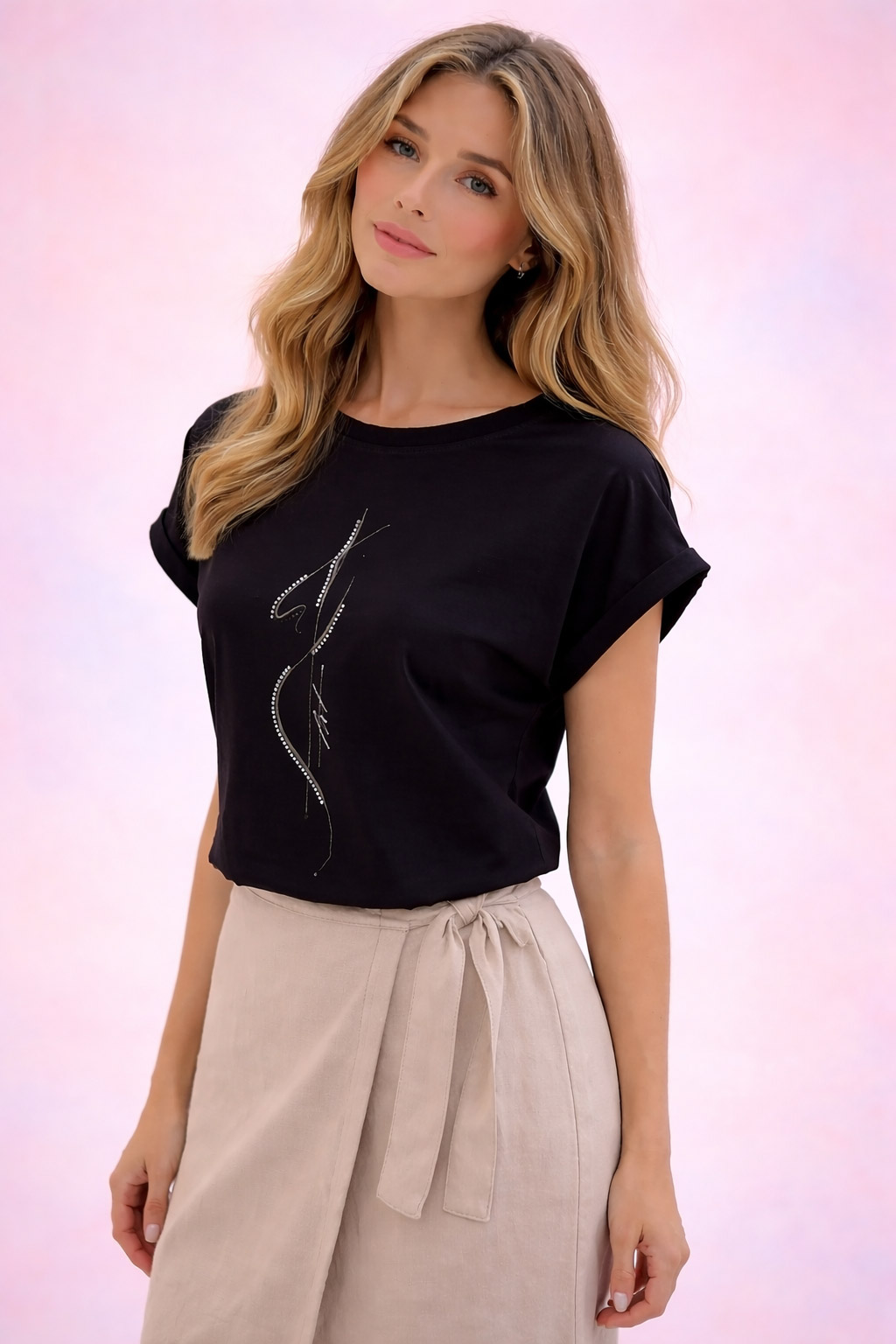Szukasz bazy do codziennych zestawów, która jest jednocześnie trwała i stylowa? Ta bluzka bawełniana to projekt stworzony z myślą o kobietach ceniących styl casual. Dzięki swojej prostej formie, bluzka rewelacyjnie komponuje się zarówno z klasycznymi jeansami, jak i z bardziej eleganckimi spodniami czy spódnicami.