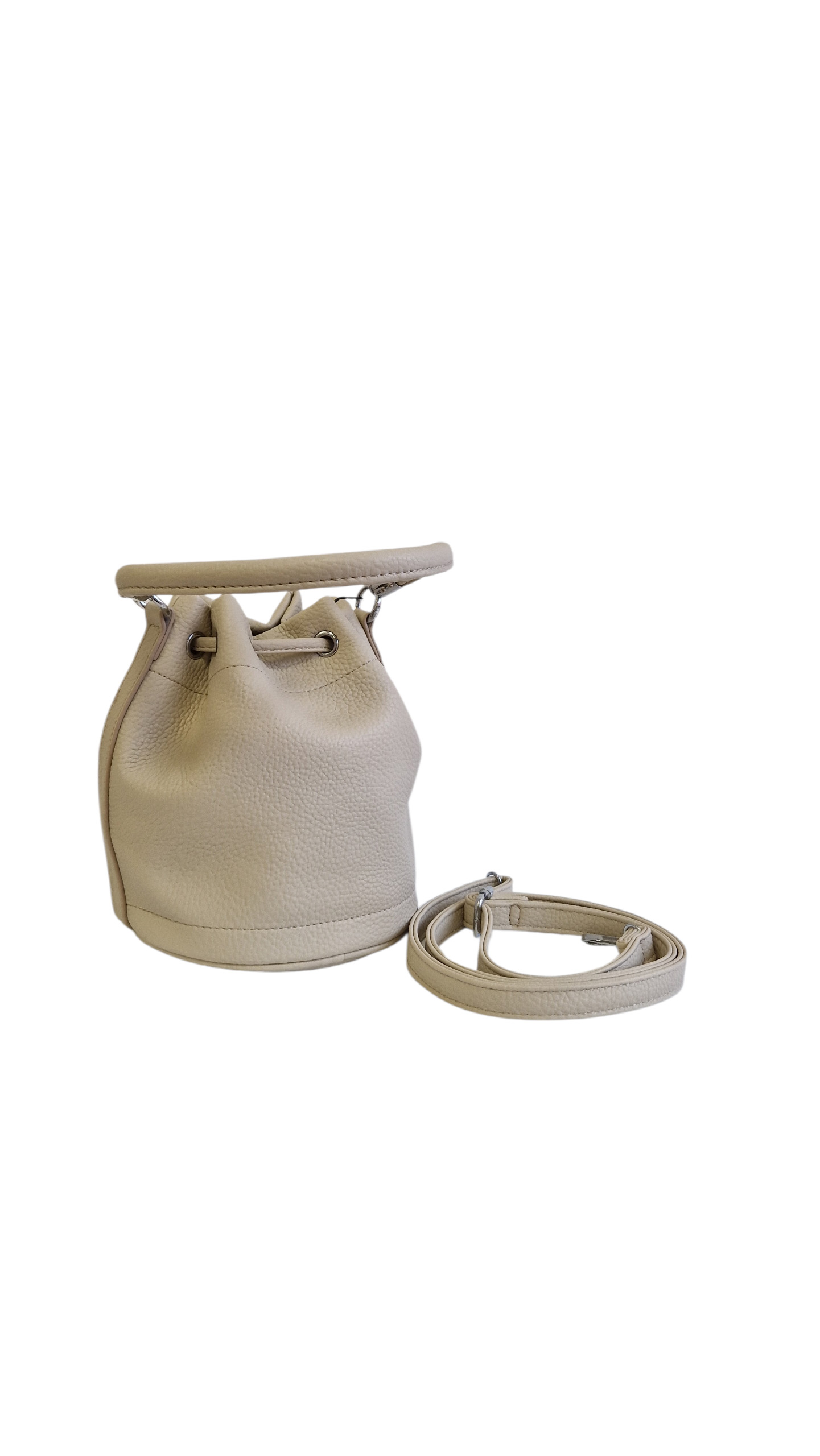 Ta mała torebka bucket bag wykonana została z przyjemnej w dotyku skóry eko o pięknej strukturze. Dzięki kompaktowym wymiarom, torebka nie mieści formatu A4, co czyni ją niezwykle poręczną i lekką. Zestawisz ją z kwiecistą sukienką, jeansową kurtką lub casualowym dresowym kompletem. Dostępna w klasycznej czerni, uniwersalnym beżu oraz świeżej, wiosennej mięcie.
