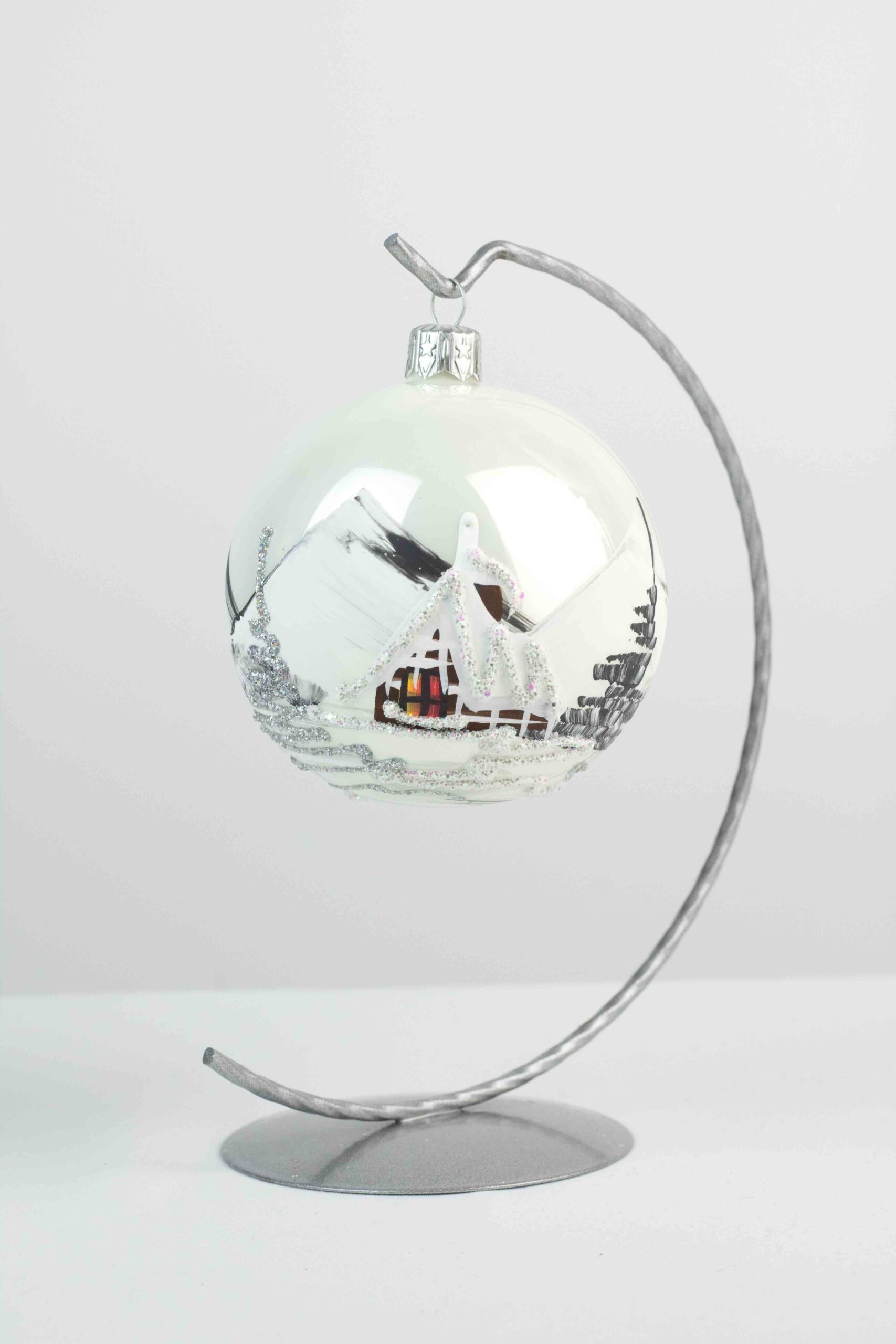 Biała Bombka na Boże Narodzenie na Stojaku 80