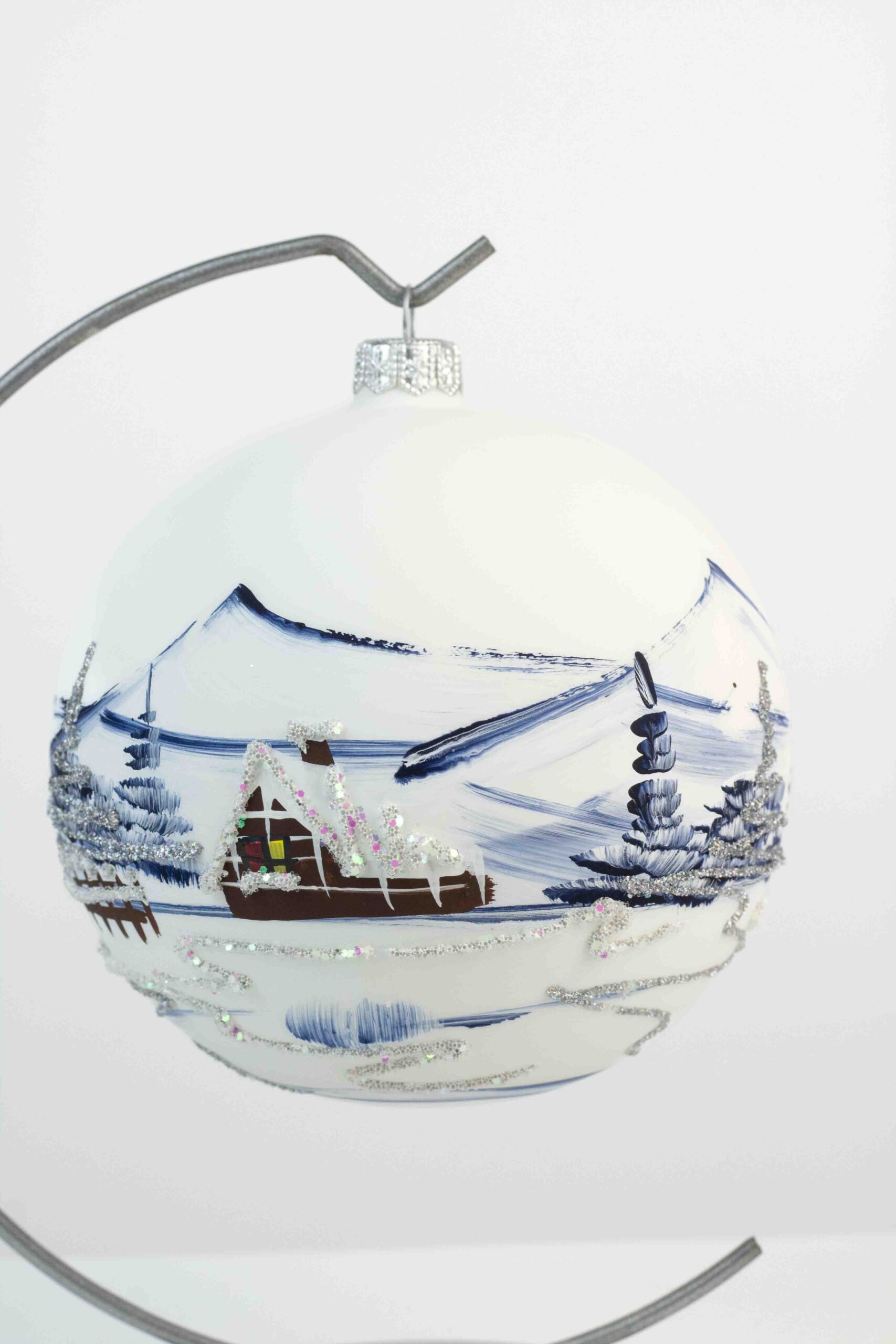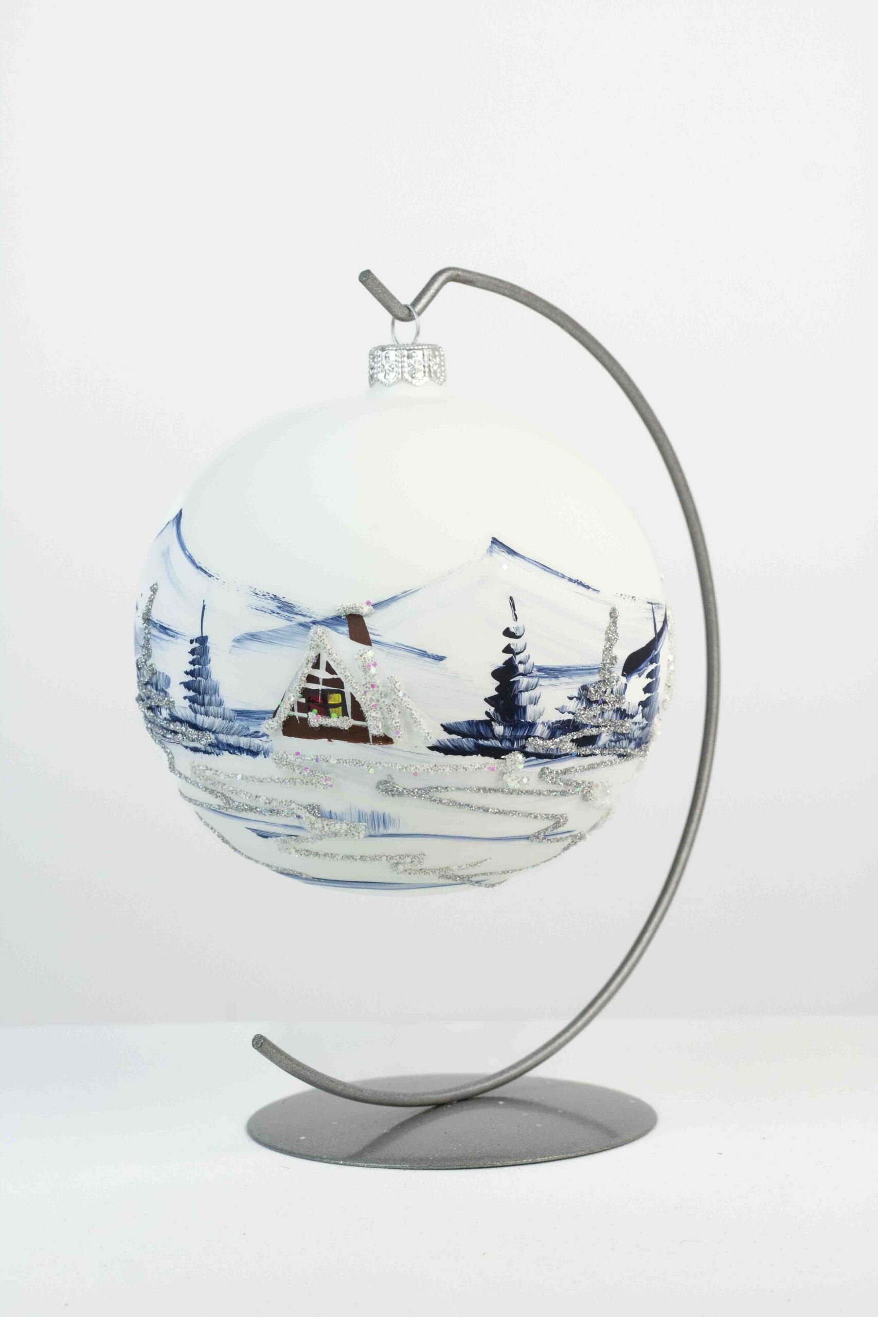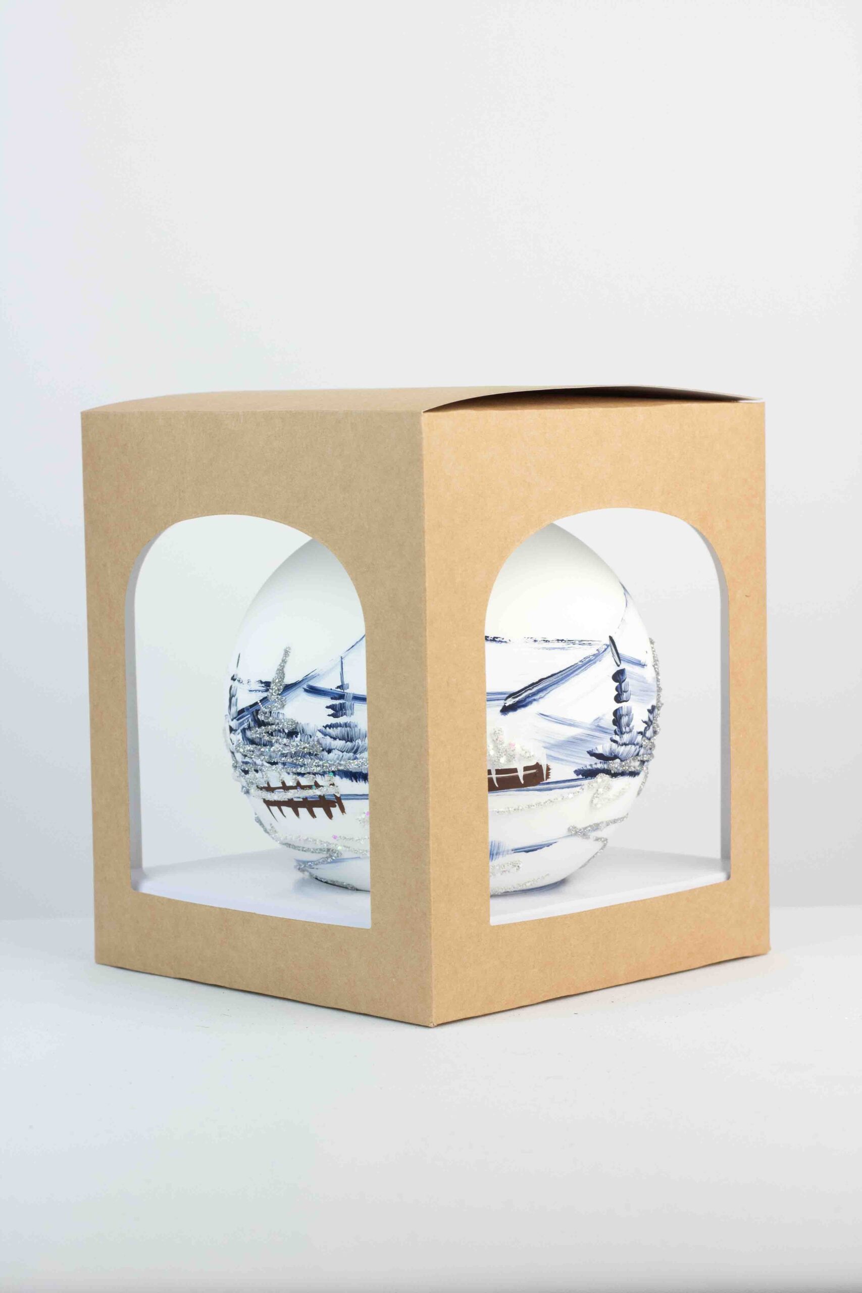 Dodaj swojemu wnętrzu odrobinę magii i elegancji dzięki, ręcznie malowanej bombce świątecznej ze stojakiem. Ta wyjątkowa ozdoba o wysokości zachwyca starannie odwzorowanymi zimowymi pejzażami – sceneriami z zaśnieżonymi domkami, lasami i szczegółami, które wprowadzają niepowtarzalny świąteczny klimat. Każda bombka to małe dzieło sztuki, ręcznie wykonane z dbałością o każdy detal, dzięki czemu każda jest unikalna i jedyna w swoim rodzaju.