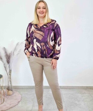 Bluzka świetnie prezentuje się w duecie z klasycznymi spodniami lub spódnicą ołówkową, tworząc stylowy zestaw do pracy lub na spotkanie. W połączeniu z jeansami i kardiganem stanie się natomiast casualową bluzką na co dzień. Niezależnie od okazji – zawsze wygląda świeżo, elegancko i z klasą.