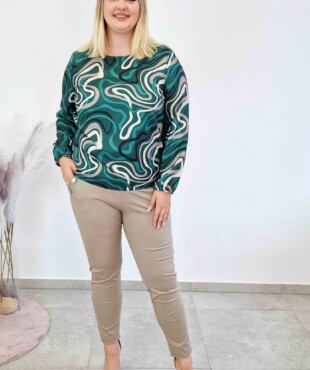 Utrzymana w spokojnych tonach ziele i beżu, wprowadza do Twojej garderoby nutę spokoju i klasy. Okrągły dekolt oraz lekko luźny fason podkreślają sylwetkę, zapewniając swobodę i wygodę przez cały dzień.