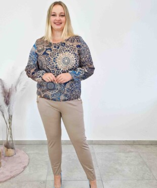 Zamów już teraz tę niebiesko-beżową bluzkę damską w mandale i odkryj idealne połączenie komfortu i kobiecego stylu!