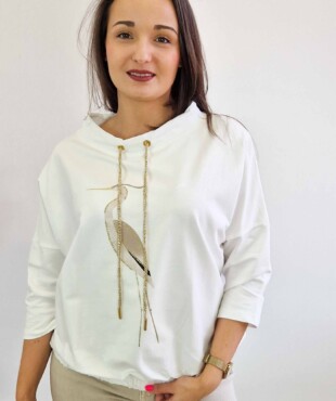 Dodaj tę bluzkę z czaplą do koszyka i ciesz się komfortem i elegancją na co dzień!