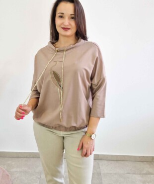 To idealny wygodny basic na co dzień, który wyróżnia się nietuzinkowym wzorem i eleganckimi, złotymi detalami. Fason z rękawem 3/4 i elastyczną gumką na dole zapewnia komfort noszenia i pozwala na stylowe ukrycie ewentualnych mankamentów. Dostępna w modnych kolorach – pudrowy róż, kremowy, czarny i beżowa bluzka – jest idealnym elementem jesiennych stylizacji.