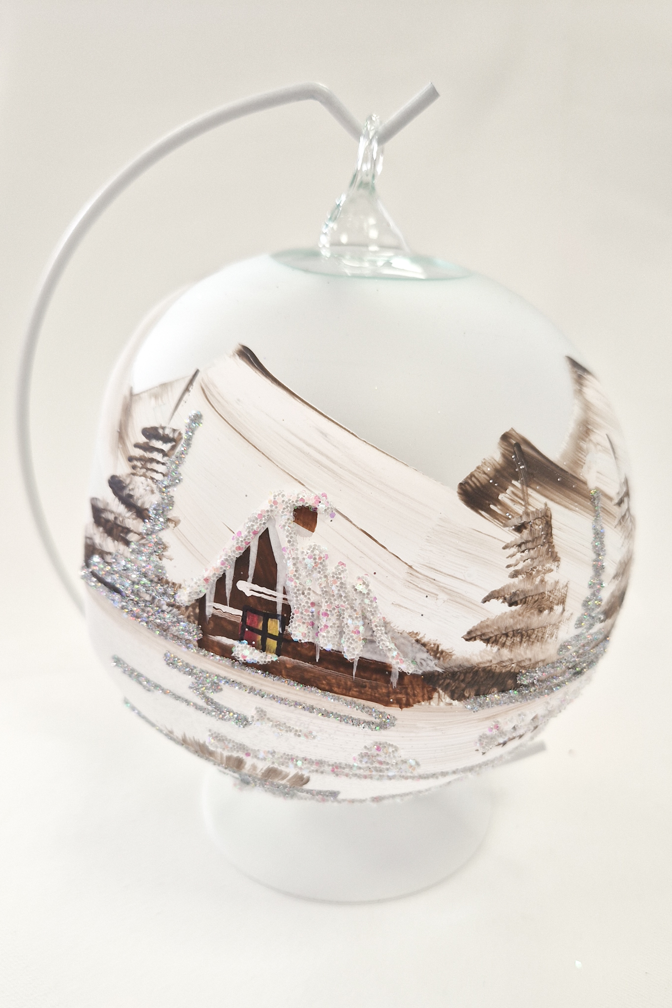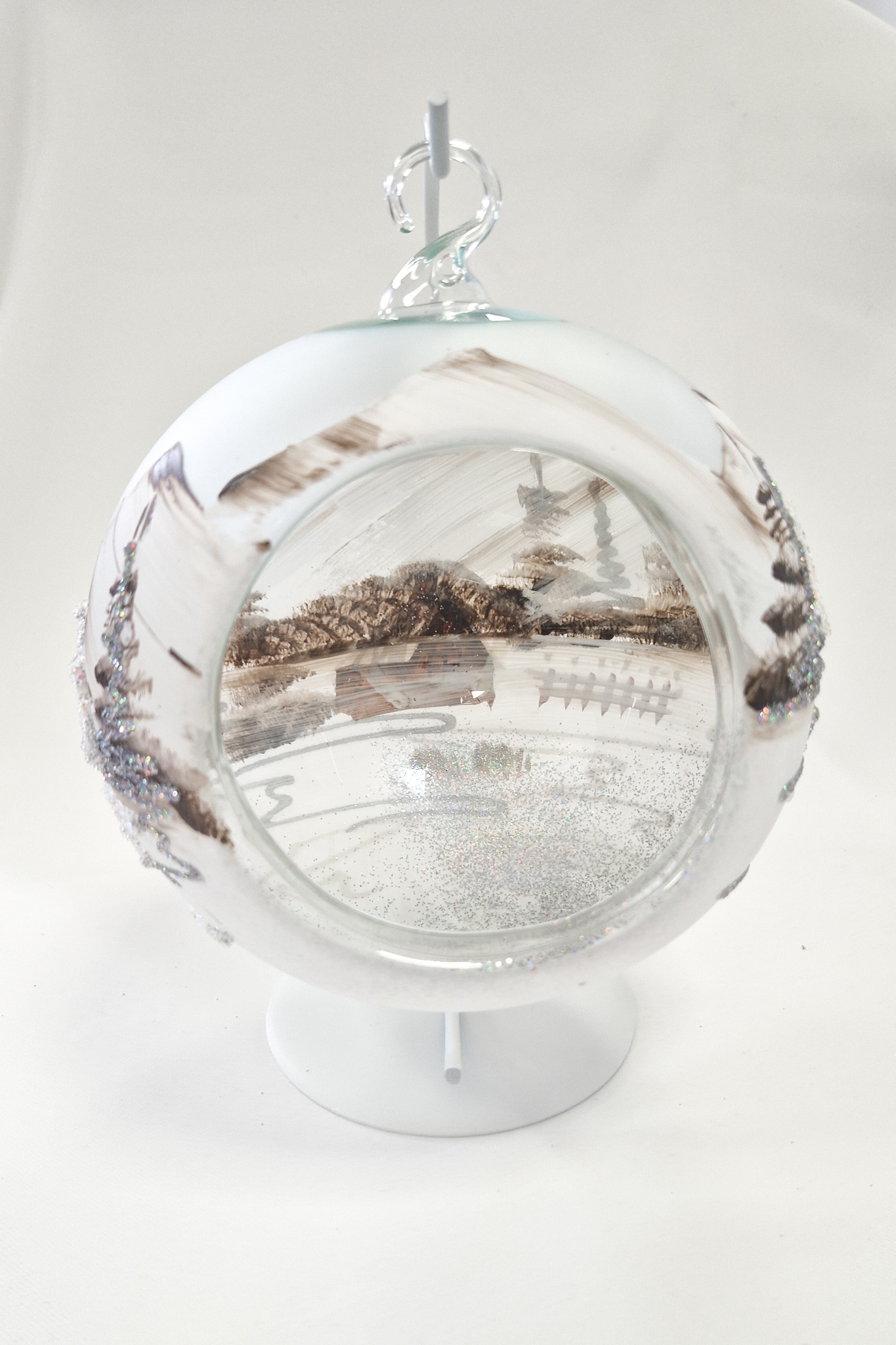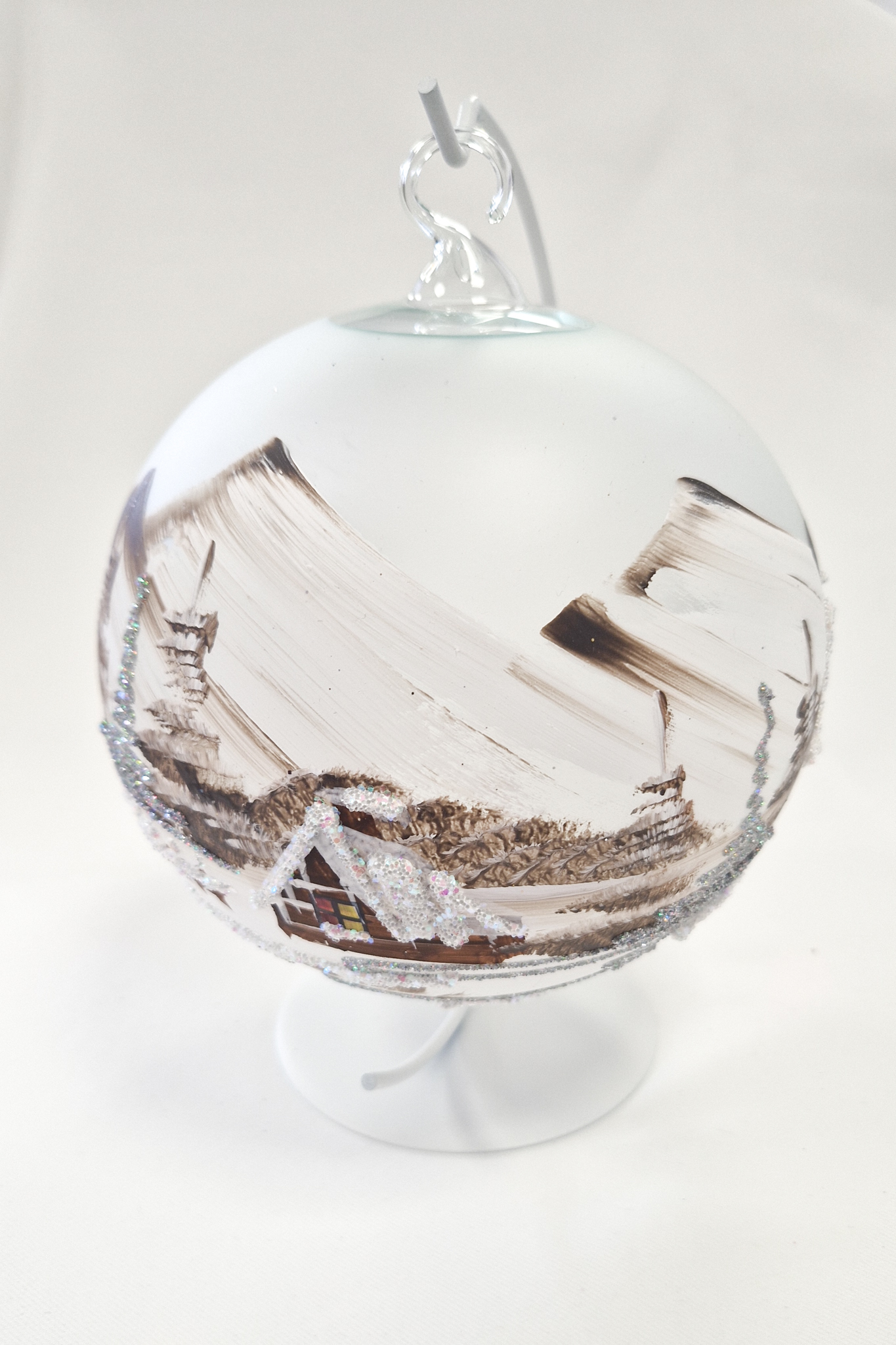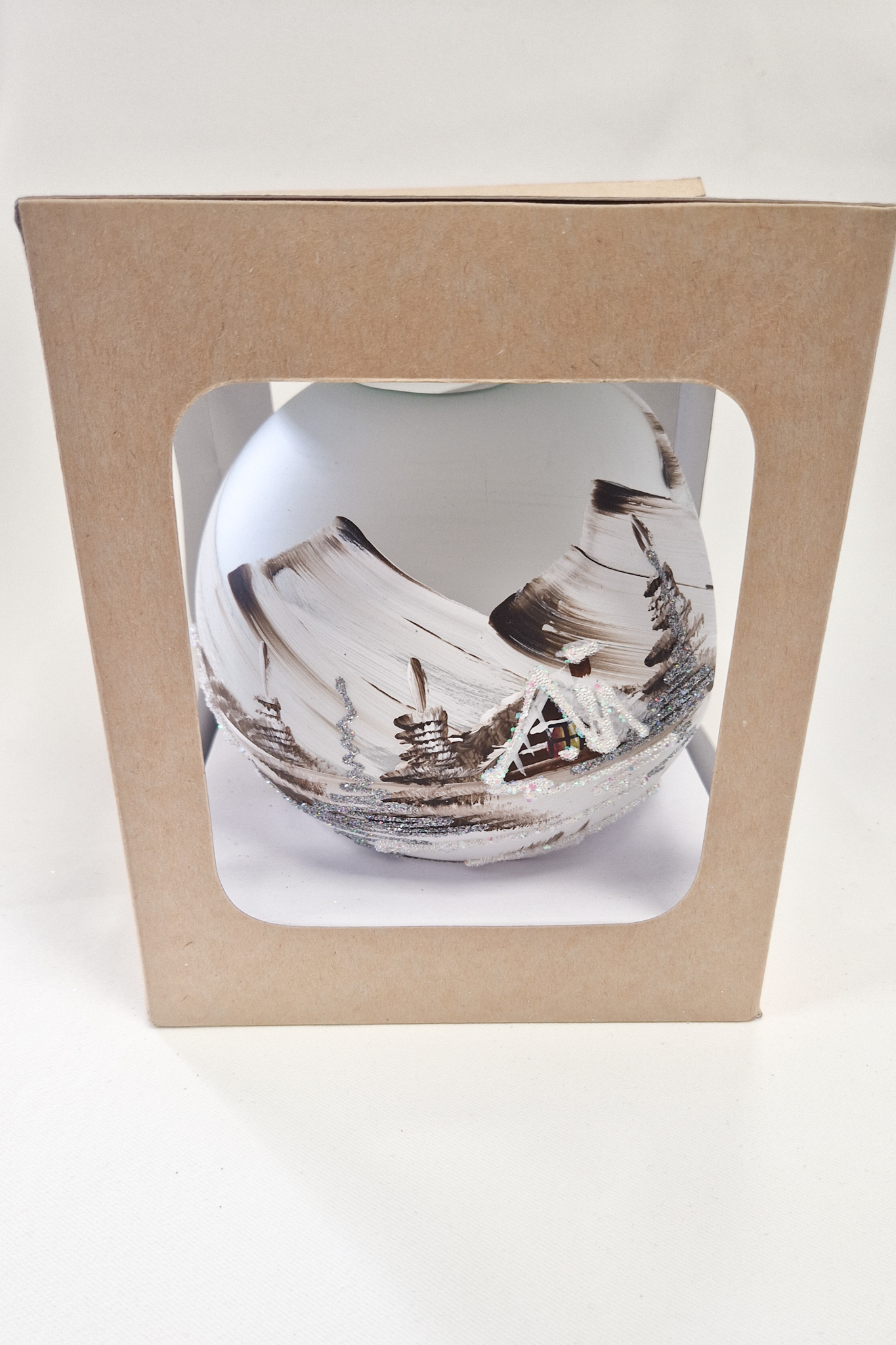 Dodaj swojemu wnętrzu odrobinę magii dzięki unikatowej, ręcznie wykonanej szklanej bombce o wysokości 17 cm. Ta elegancka ozdoba przedstawia starannie odwzorowany zimowy pejzaż – scenerię z zaśnieżonymi domkami i lasami, która zachwyca dbałością o detale i precyzją wykonania. Każda bombka jest efektem ręcznej pracy, dzięki czemu stanowi wyjątkową dekorację, której nie znajdziesz w masowej produkcji.