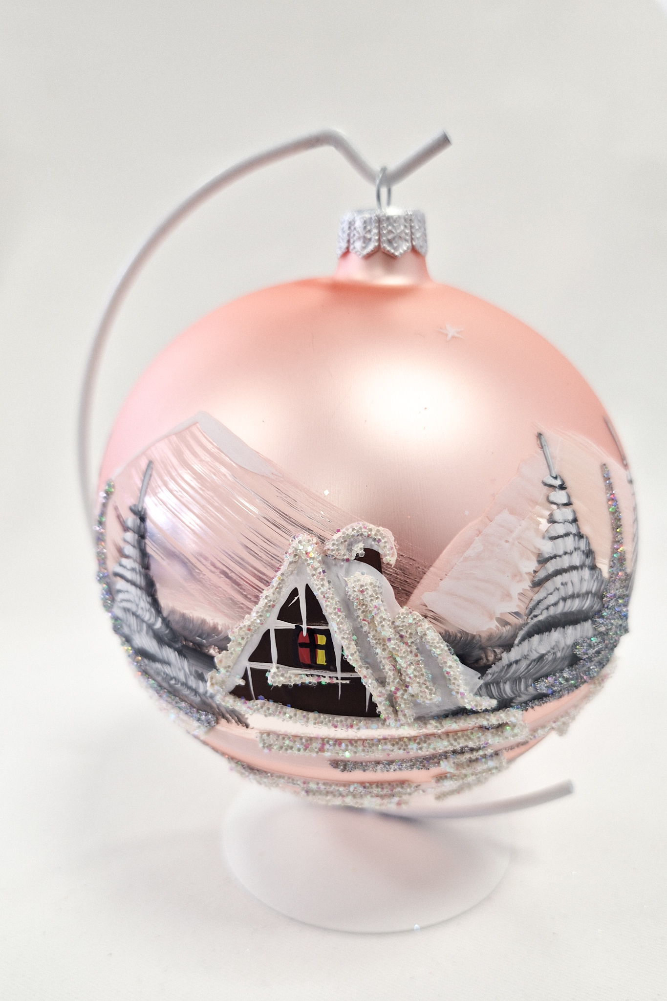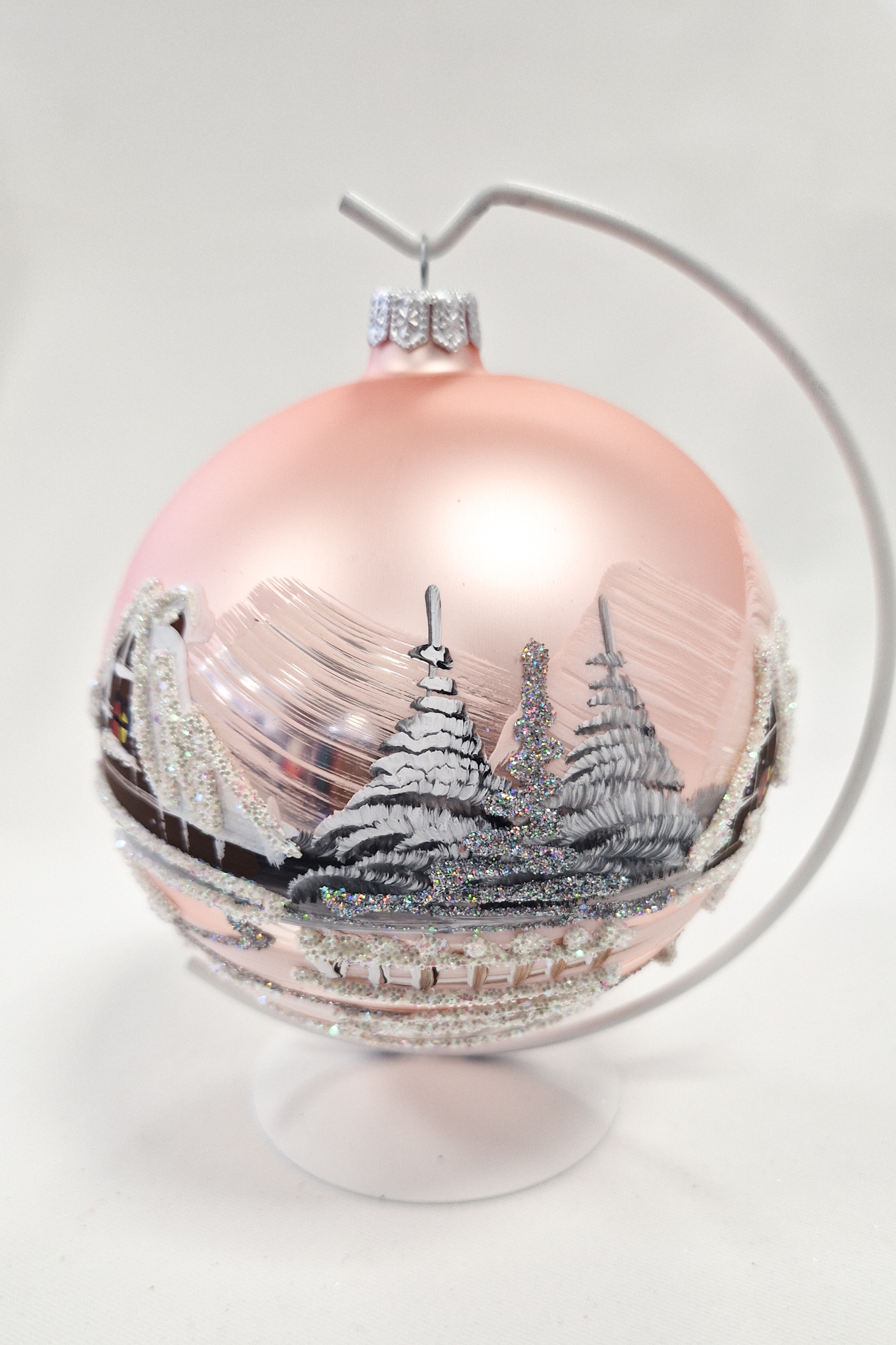 Dodaj swojemu wnętrzu odrobinę magii i elegancji dzięki, ręcznie malowanej bombce świątecznej ze stojakiem. Ta wyjątkowa ozdoba o wysokości zachwyca starannie odwzorowanymi zimowymi pejzażami – sceneriami z zaśnieżonymi domkami, lasami i szczegółami, które wprowadzają niepowtarzalny świąteczny klimat. Każda bombka to małe dzieło sztuki, ręcznie wykonane z dbałością o każdy detal, dzięki czemu każda jest unikalna i jedyna w swoim rodzaju.