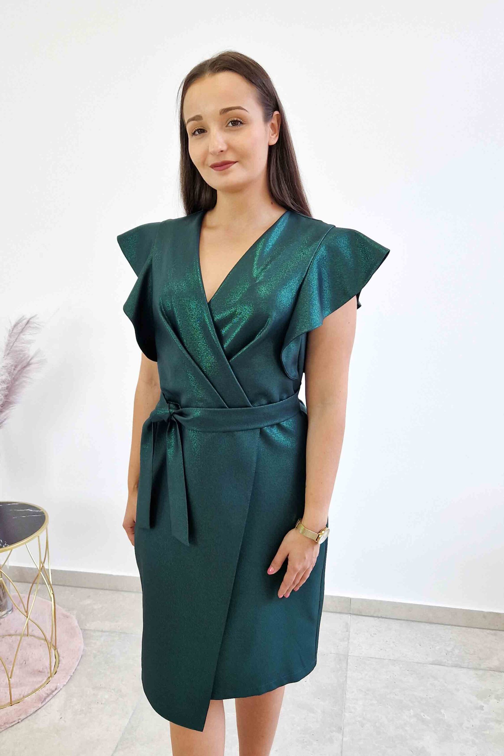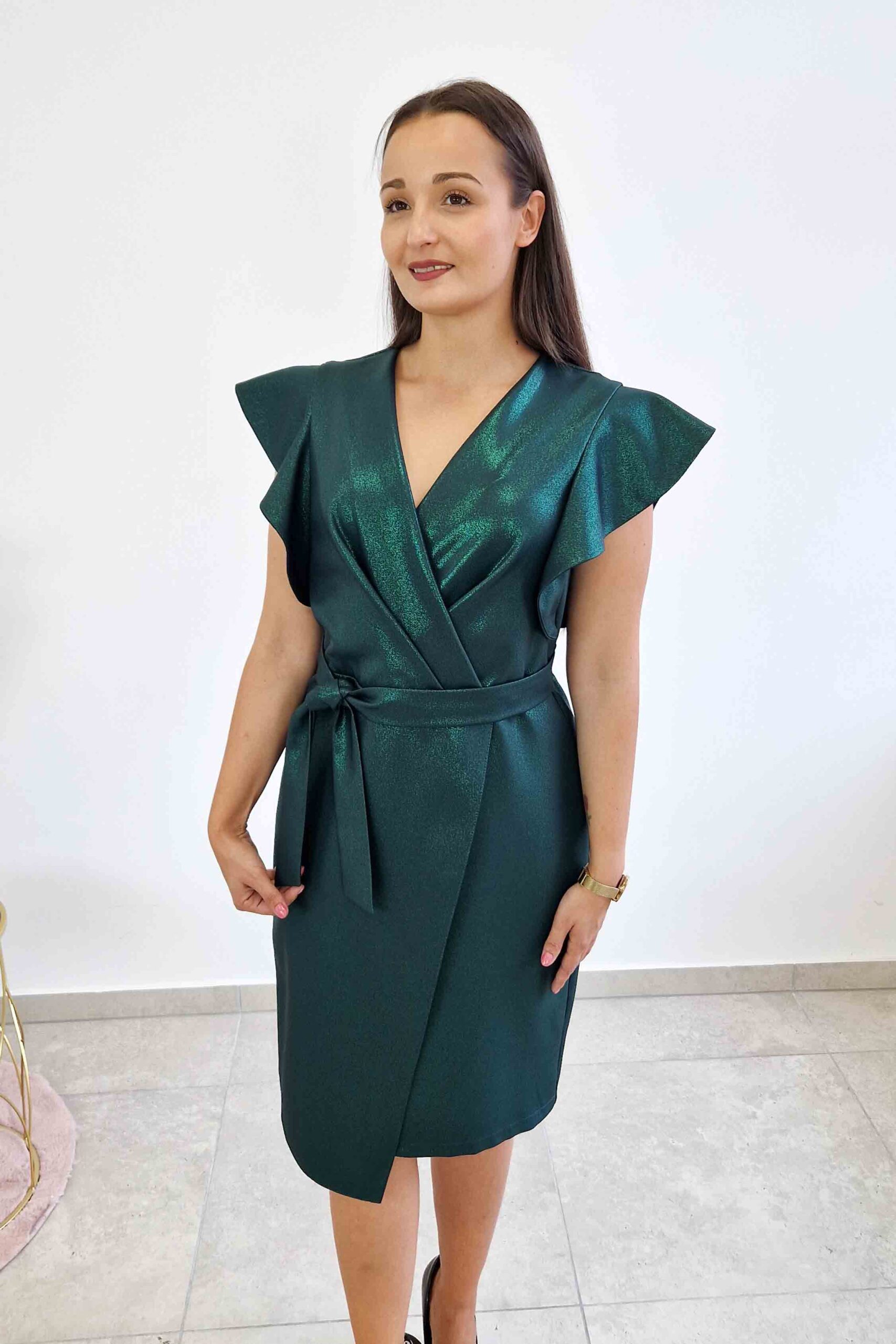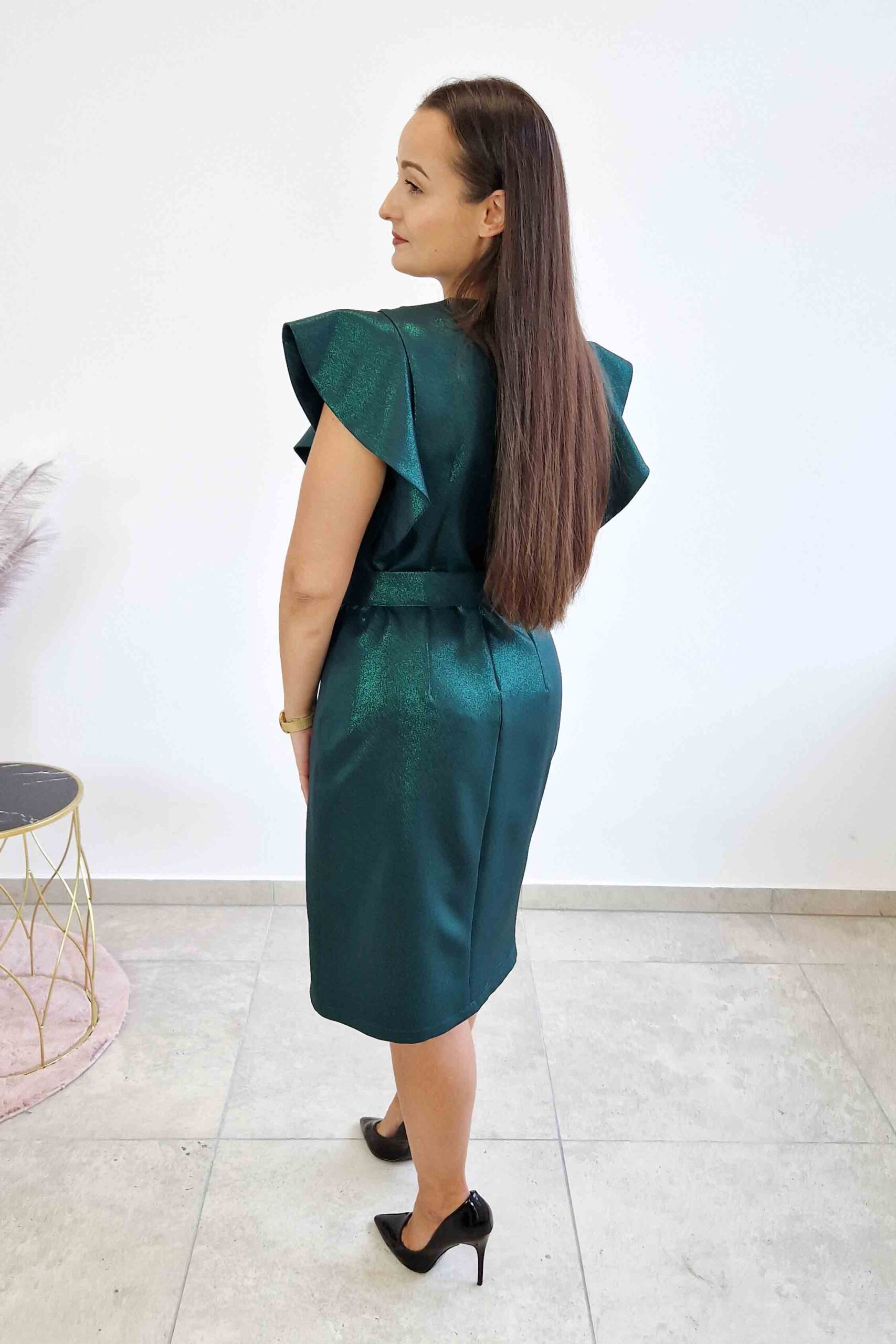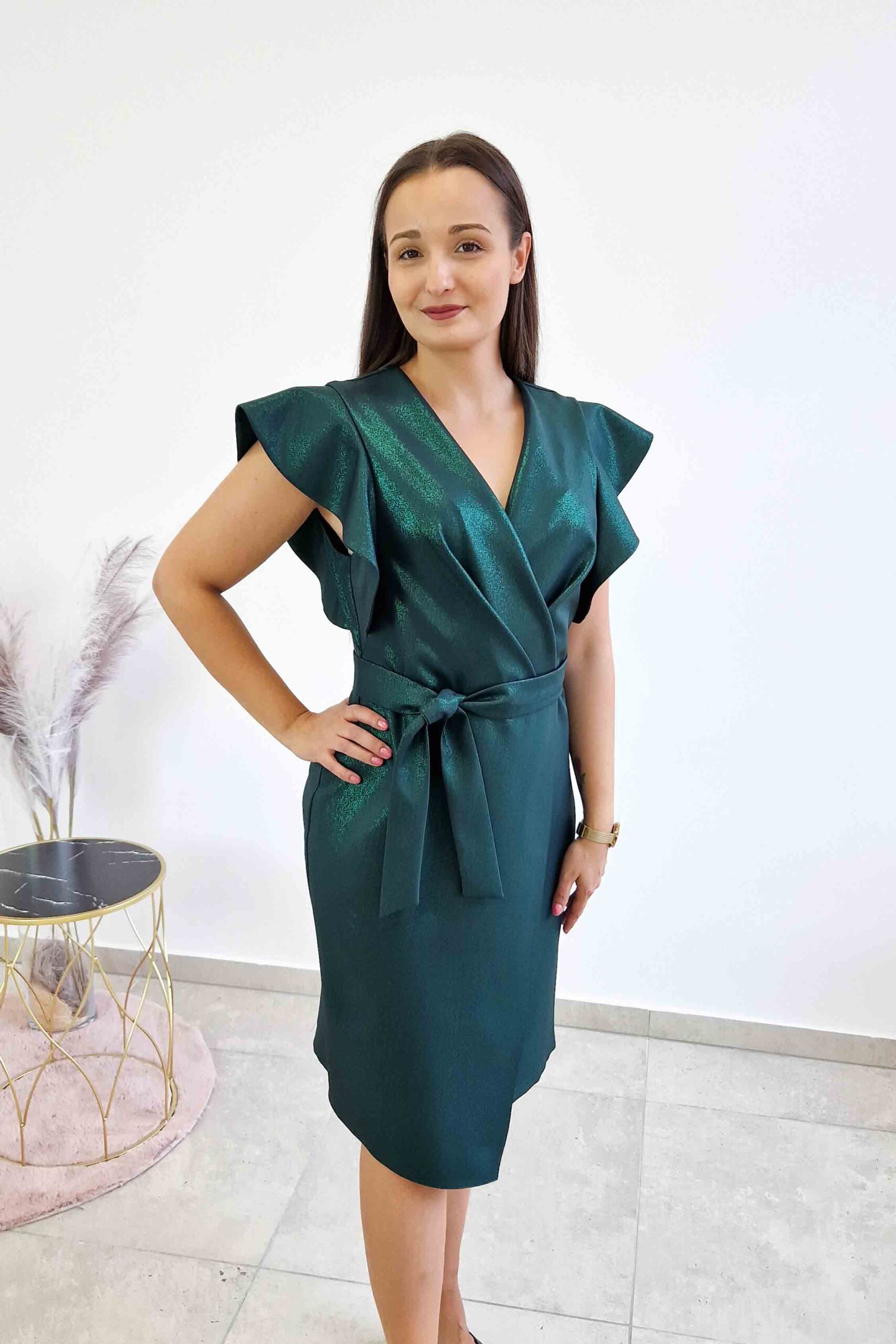 Wykonana z wysokiej jakości tkaniny z delikatnym połyskiem , sprawi, że z łatwością zabłyśniesz na każdym przyjęciu. Sukienka dostępna jest w dwóch głębokich i modnych odcieniach: klasycznej butelkowej zieleni oraz eleganckim niebieskim. Wybierz swój kolor i poczuj się wyjątkowo!