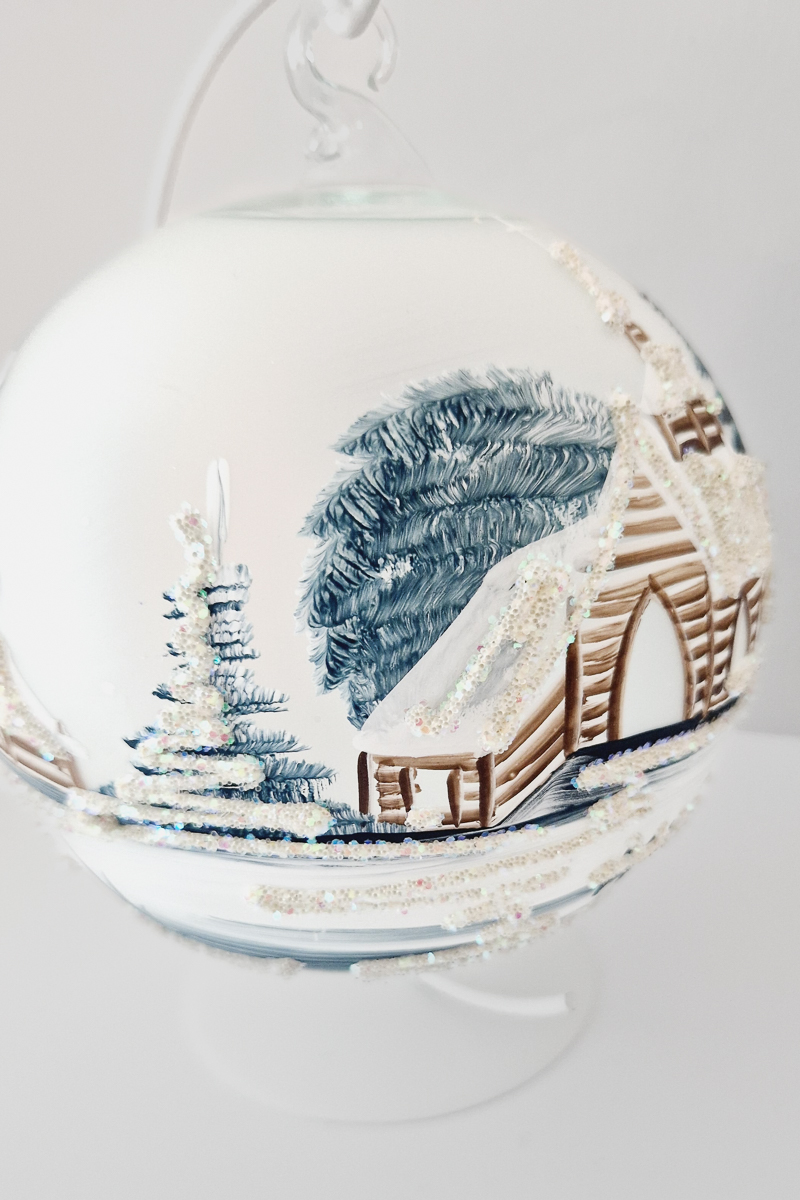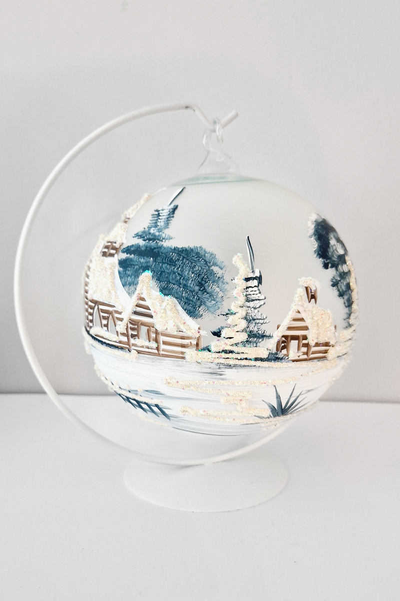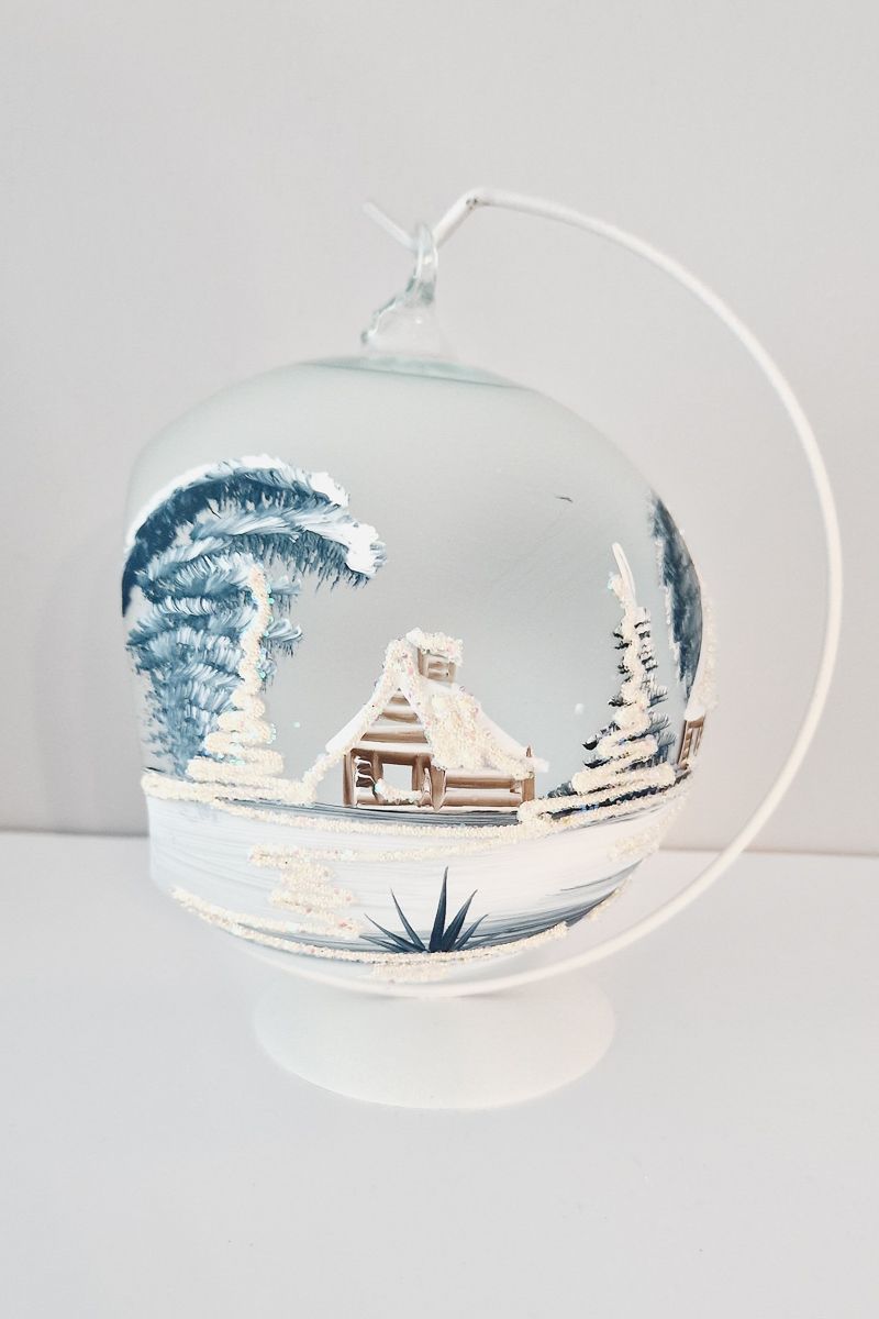 Dodaj swojemu wnętrzu odrobinę magii dzięki unikatowej, ręcznie wykonanej szklanej bombce o wysokości 17 cm. Ta elegancka ozdoba przedstawia starannie odwzorowany zimowy pejzaż – scenerię z zaśnieżonymi domkami i lasami, która zachwyca dbałością o detale i precyzją wykonania. Każda bombka jest efektem ręcznej pracy, dzięki czemu stanowi wyjątkową dekorację, której nie znajdziesz w masowej produkcji.