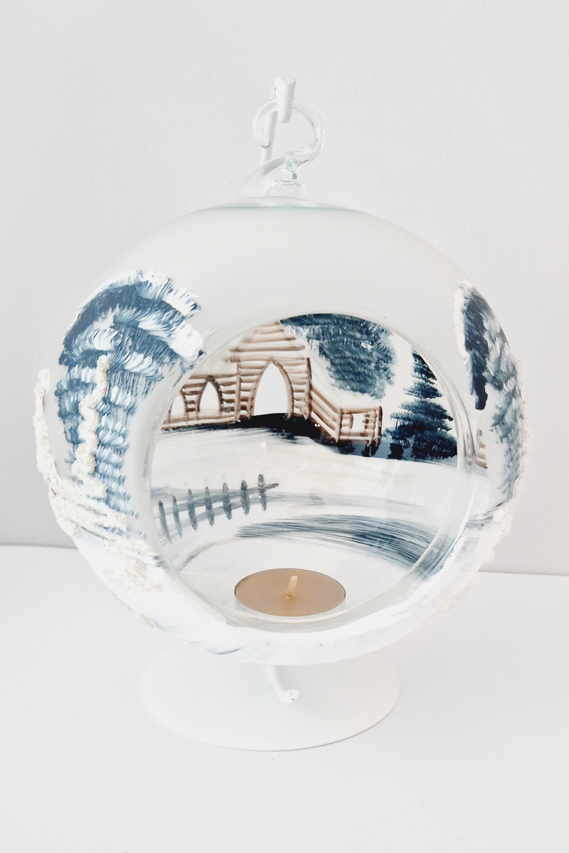 ⚠️ Do środka lampionu/bombki najlepiej włożyć małe świeczki typu tealight z białym woskiem lub bezpieczną świeczkę elektryczną. Nie zalecamy używania świec zapachowych, ponieważ wytwarzają one wyższą temperaturę, która może uszkodzić szkło.