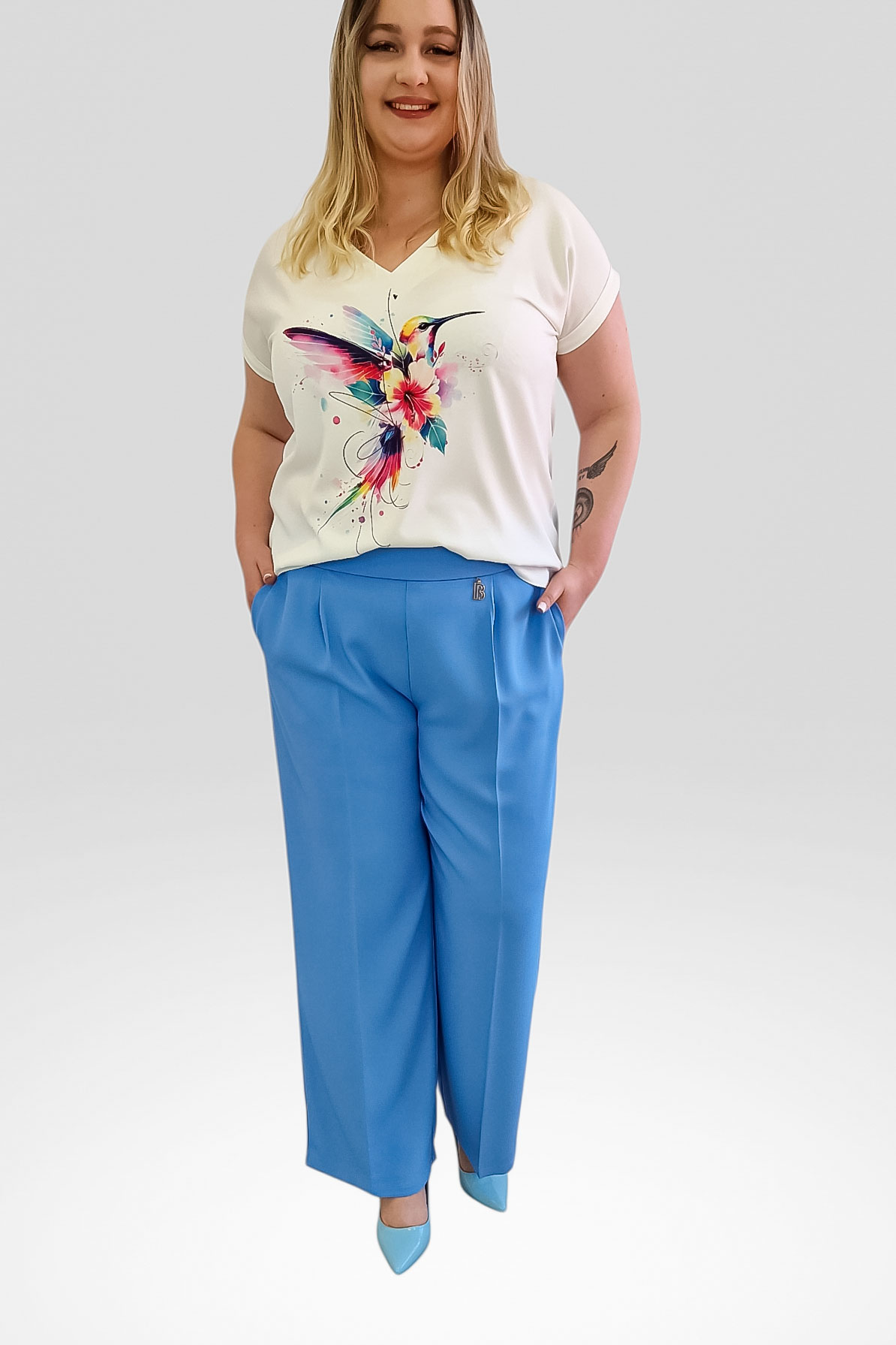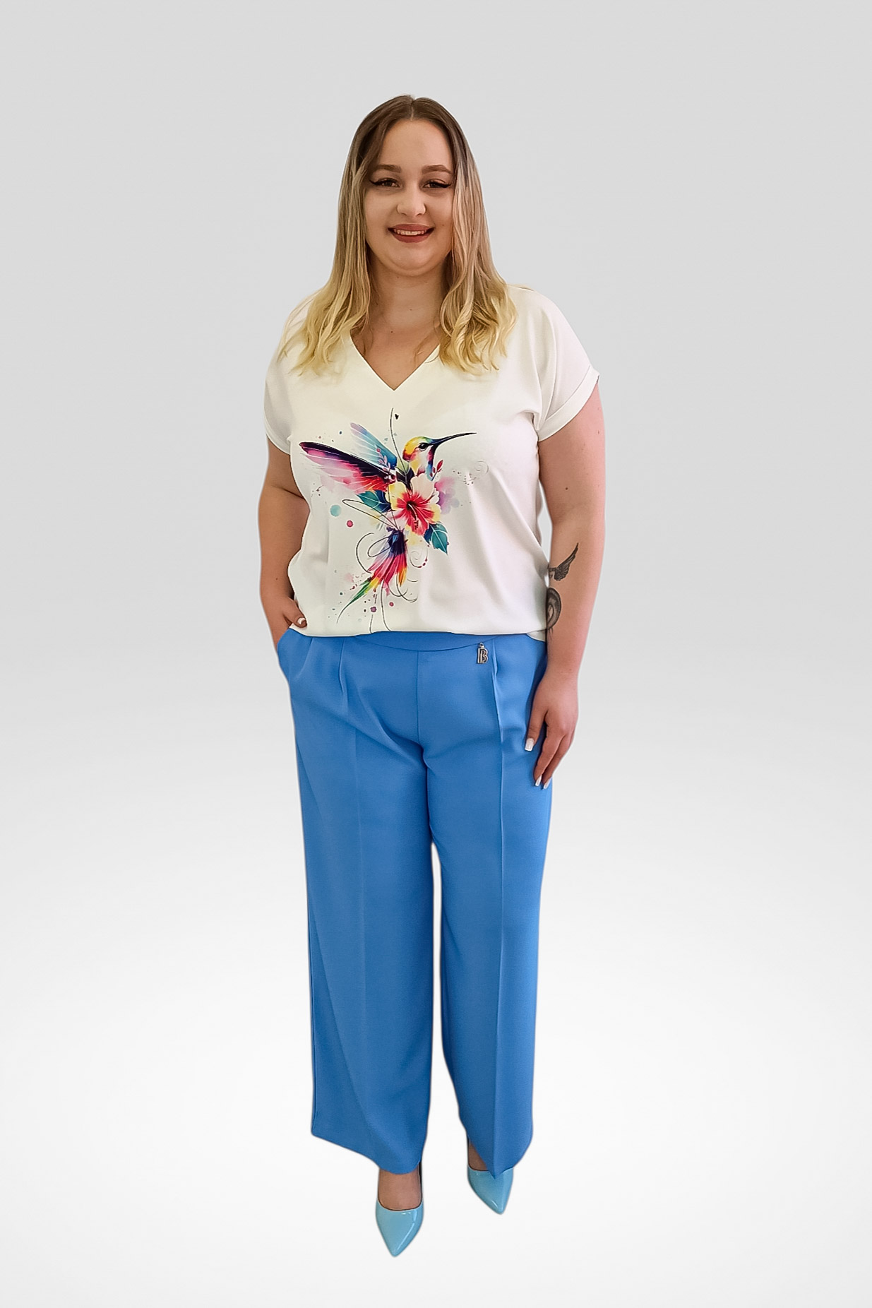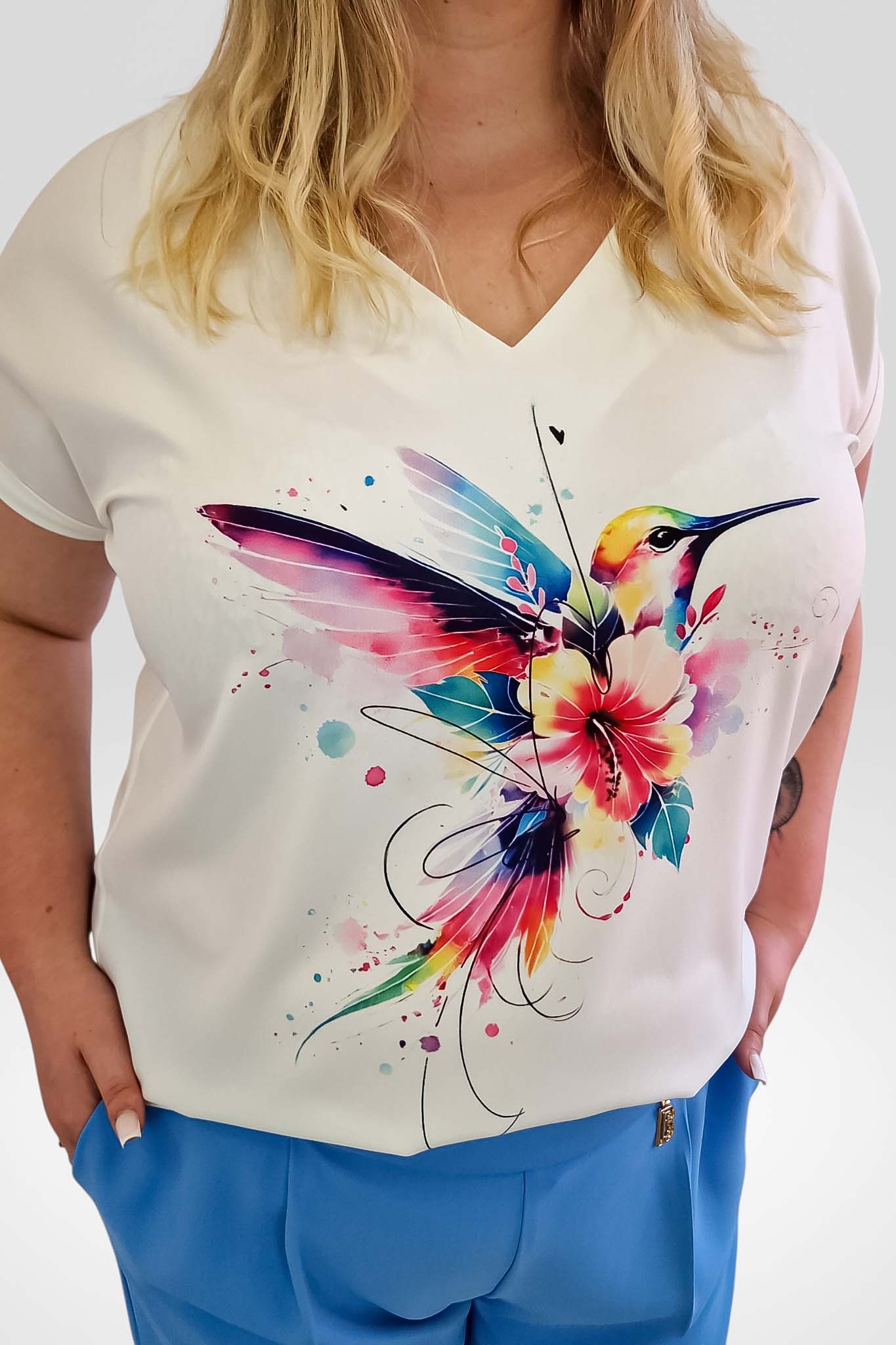 Delikatna Bluzka Damska Biała z Kolorowym Koliberkiem