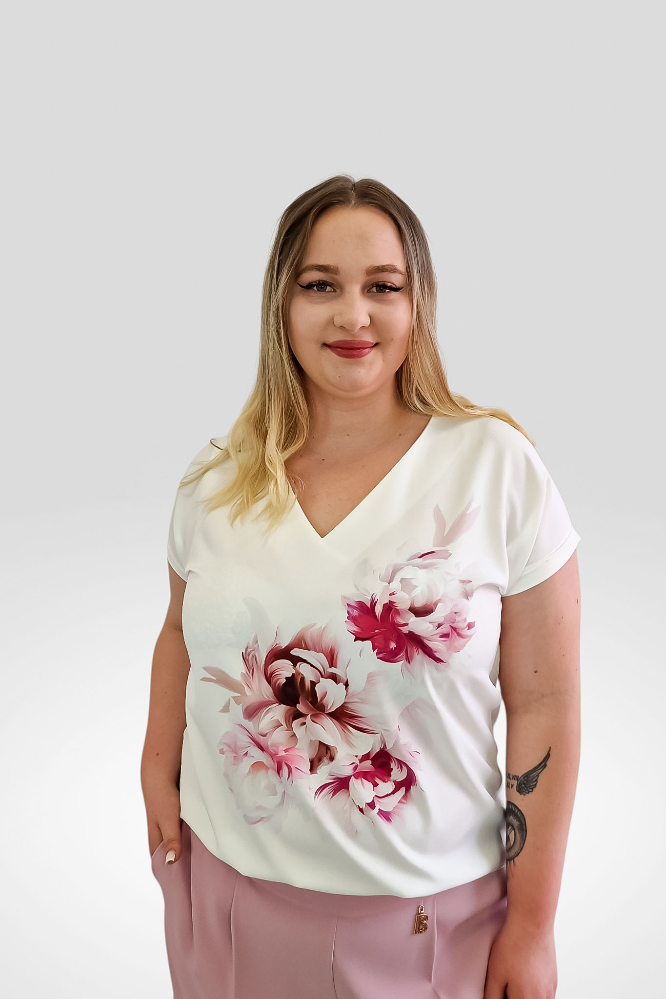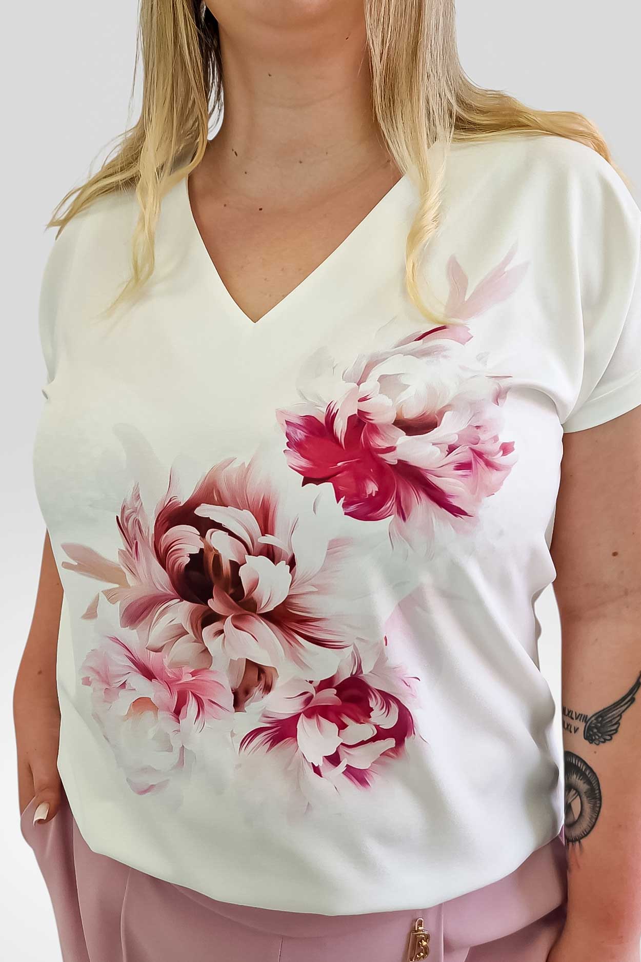 Napisz pierwszą opinię o „Delikatna Bluzka Damska Biała z Piwonią Amarant”