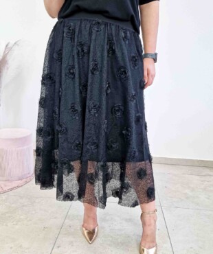 Jeśli szukasz elementu garderoby, który skradnie całą uwagę, ta spódnica z różami 3D będzie strzałem w dziesiątkę. Połączenie delikatnej, transparentnej siateczki z gęsto naszytymi, materiałowymi kwiatami tworzy niesamowity efekt głębi i sprawia, że spódnica prezentuje się niezwykle ekskluzywnie. To idealna propozycja dla kobiet, które kochają styl romantyczny z nutką nowoczesnego szyku.