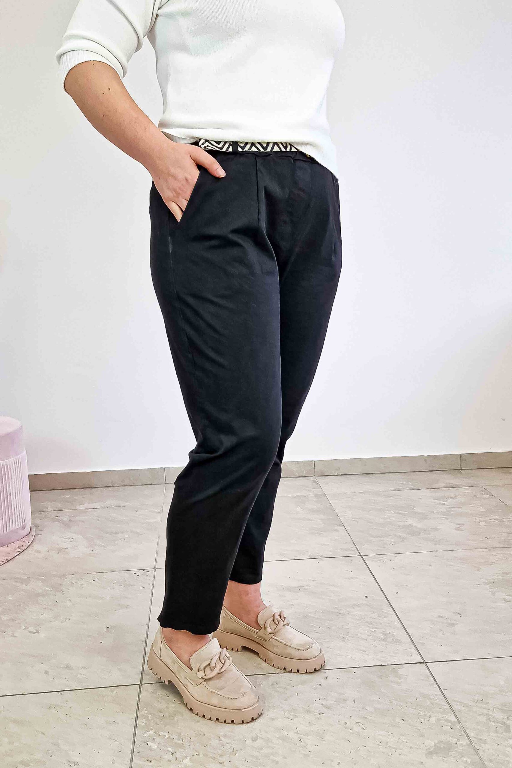 Jeśli szukasz spodni, które łączą w sobie elegancję z codzienną wygodą, ten model będzie idealnym wyborem. Spodnie z paskiem to absolutny klasyk, który powinien znaleźć się w szafie każdej kobiety ceniącej styl smart-casual. Dzięki zwężanej nogawce, spodnie świetnie eksponują kostki i doskonale prezentują się zarówno ze szpilkami, jak i z płaskim obuwiem typu mokasyny czy baleriny.