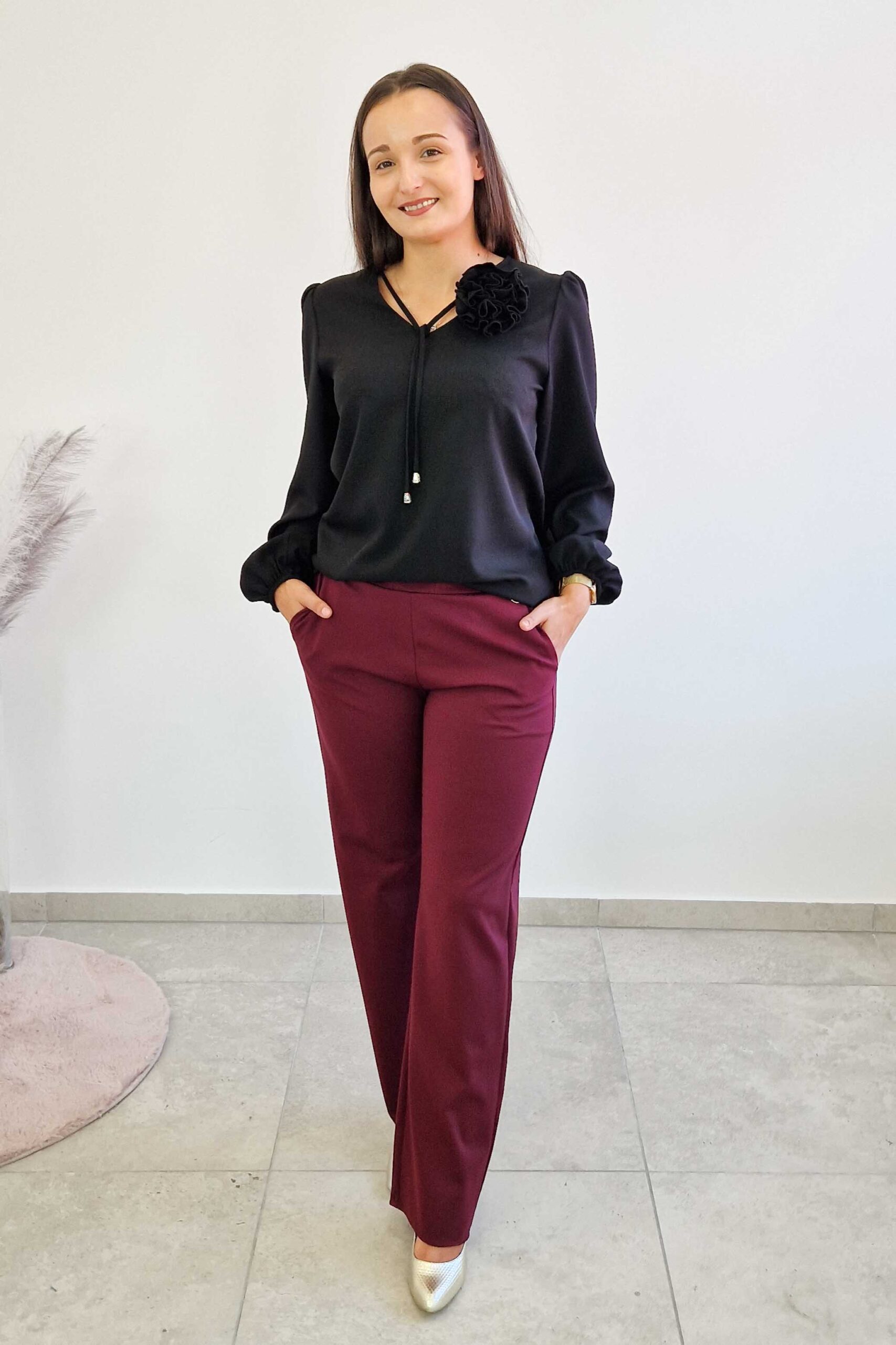 Bluzka z dekoltem V to doskonała baza do wielu stylizacji. Możesz ją nosić z eleganckimi spodniami z wysokim stanem do pracy, tworząc profesjonalny, ale kobiecy look. Na spotkanie z przyjaciółmi połącz ją z ulubionymi jeansami i botkami, a na wieczorne wyjście dobierz spódnicę ołówkową i szpilki. Doczepiana róża to fantastyczny akcent – możesz ją przypiąć do bluzki, torebki lub we włosy, nadając stylizacji indywidualnego charakteru. To idealna bluzka na jesień, która sprawdzi się także w chłodniejsze dni. Jej klasyczny fason sprawia, że to również świetna bluzka damska elegancka na specjalne okazje.