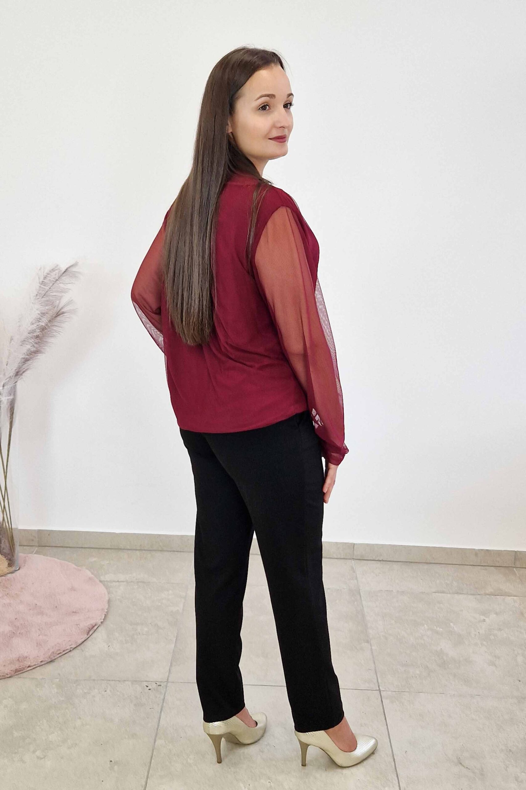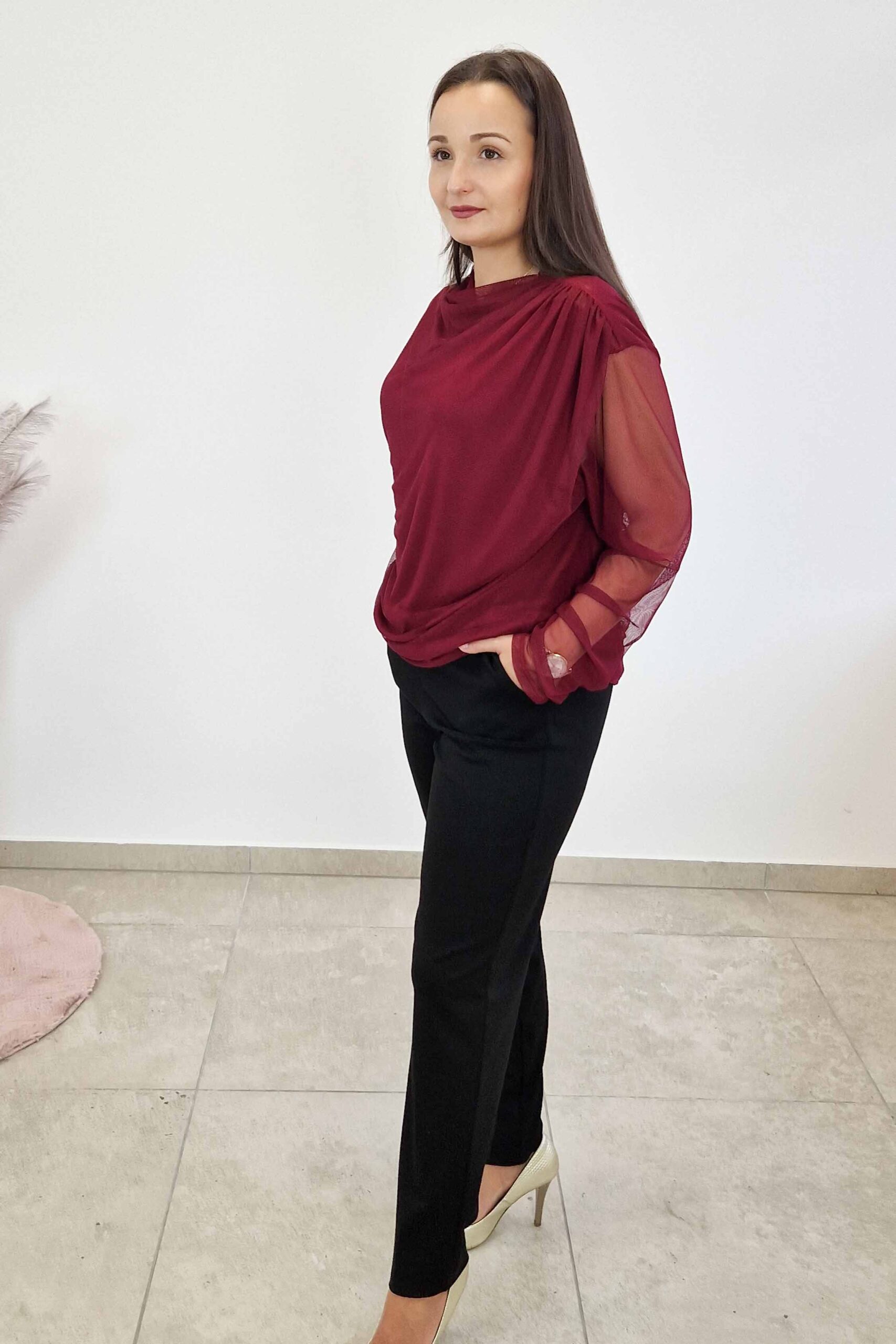 Dekolt w serek pięknie wysmukla szyję, a obniżona linia ramion nadaje jej lekko luźny, nowoczesny charakter. To ten typ bluzki, którą założysz zarówno do pracy, jak i na spotkanie z przyjaciółką.