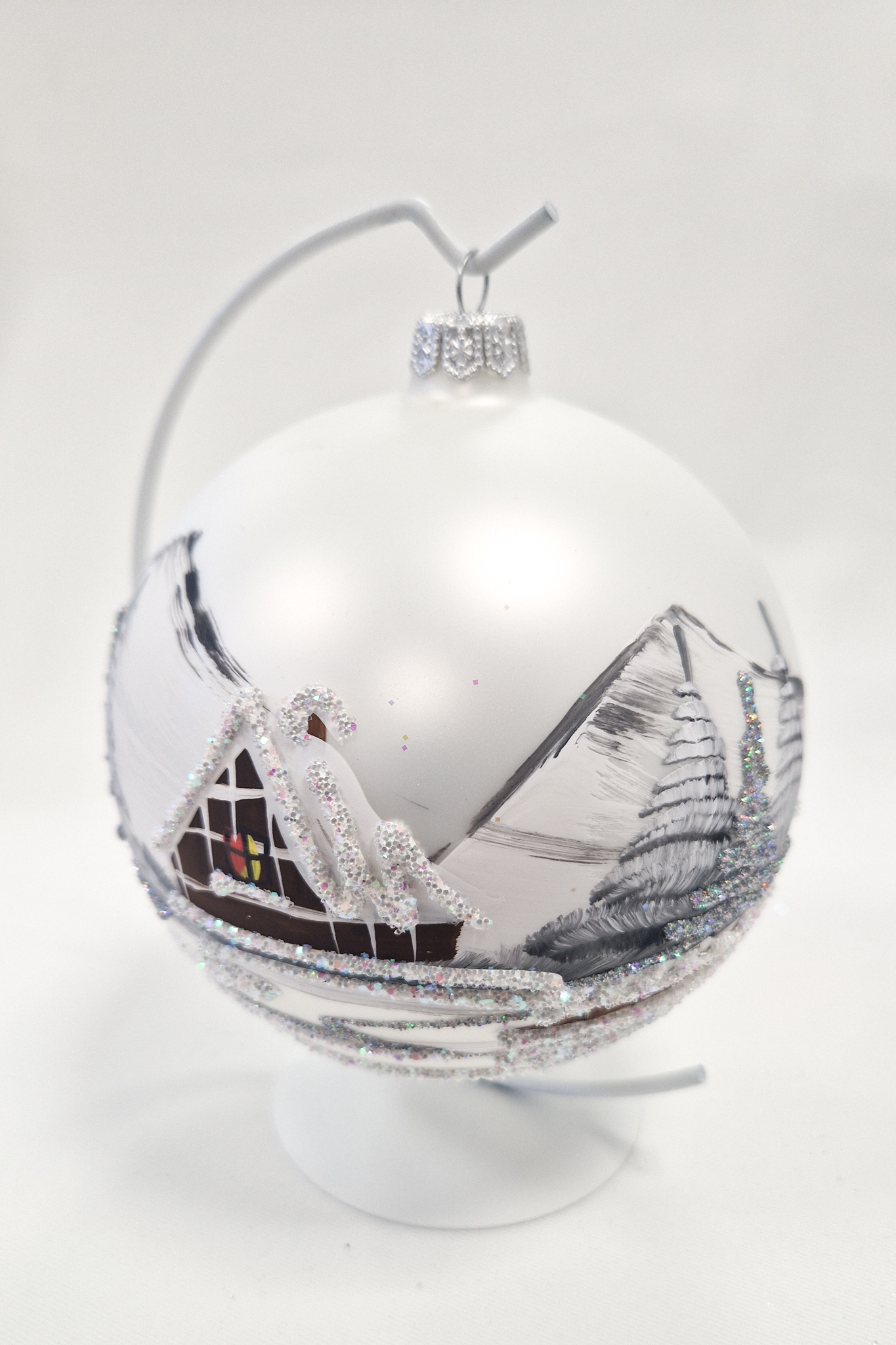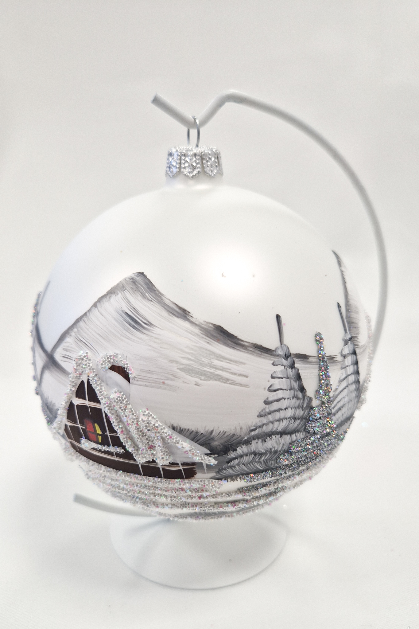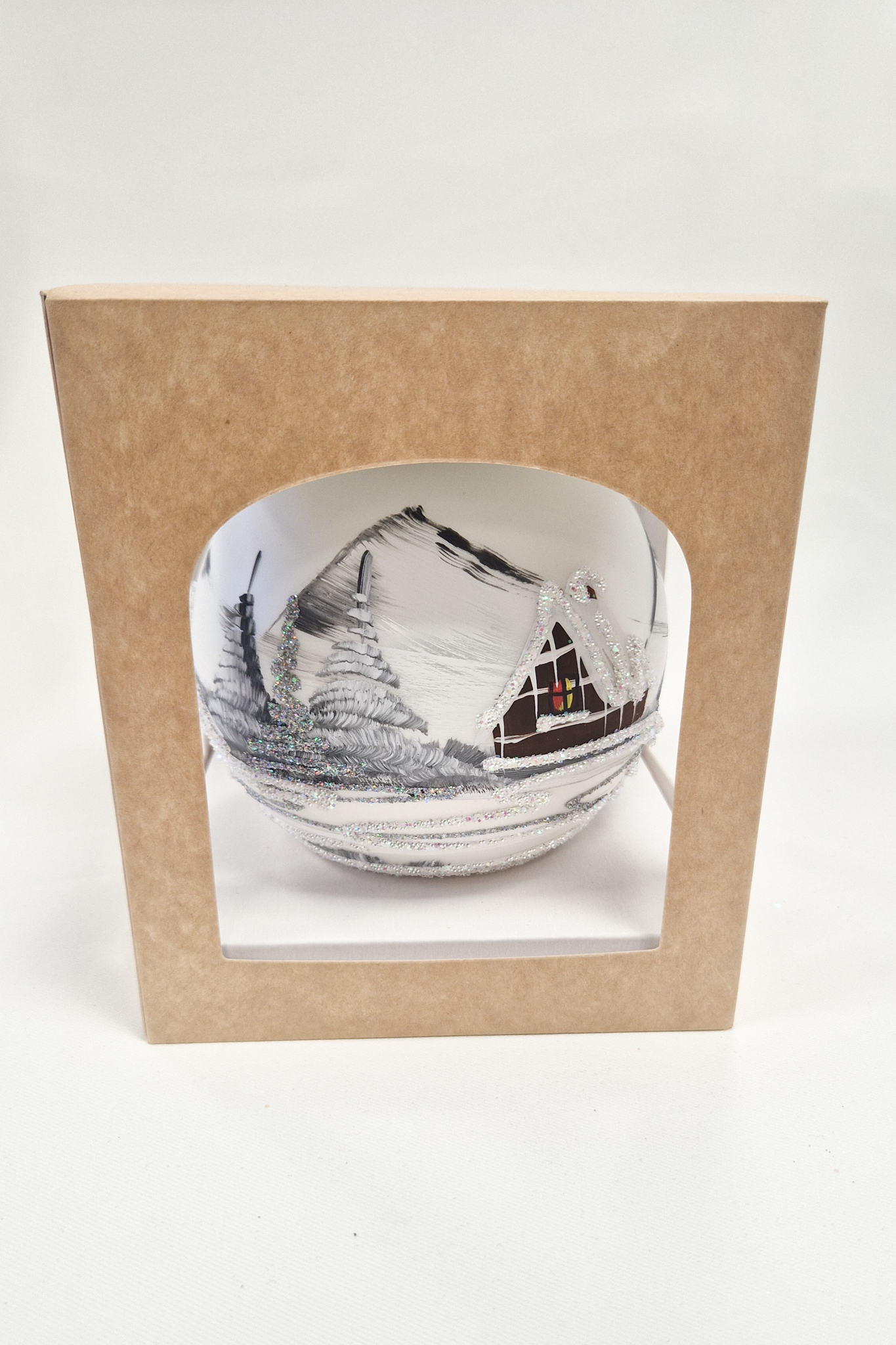 Elegancka Bombka na Stojaku Ręcznie Malowany Zimowy Pejzaż 120