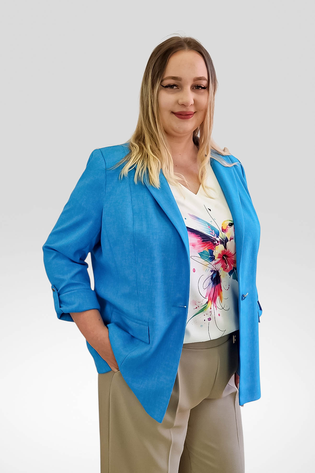 Dostępność w większych rozmiarach sprawia, że to także świetna propozycja jako marynarka damska plus size – wygodna, modna i idealna na wiele okazji.