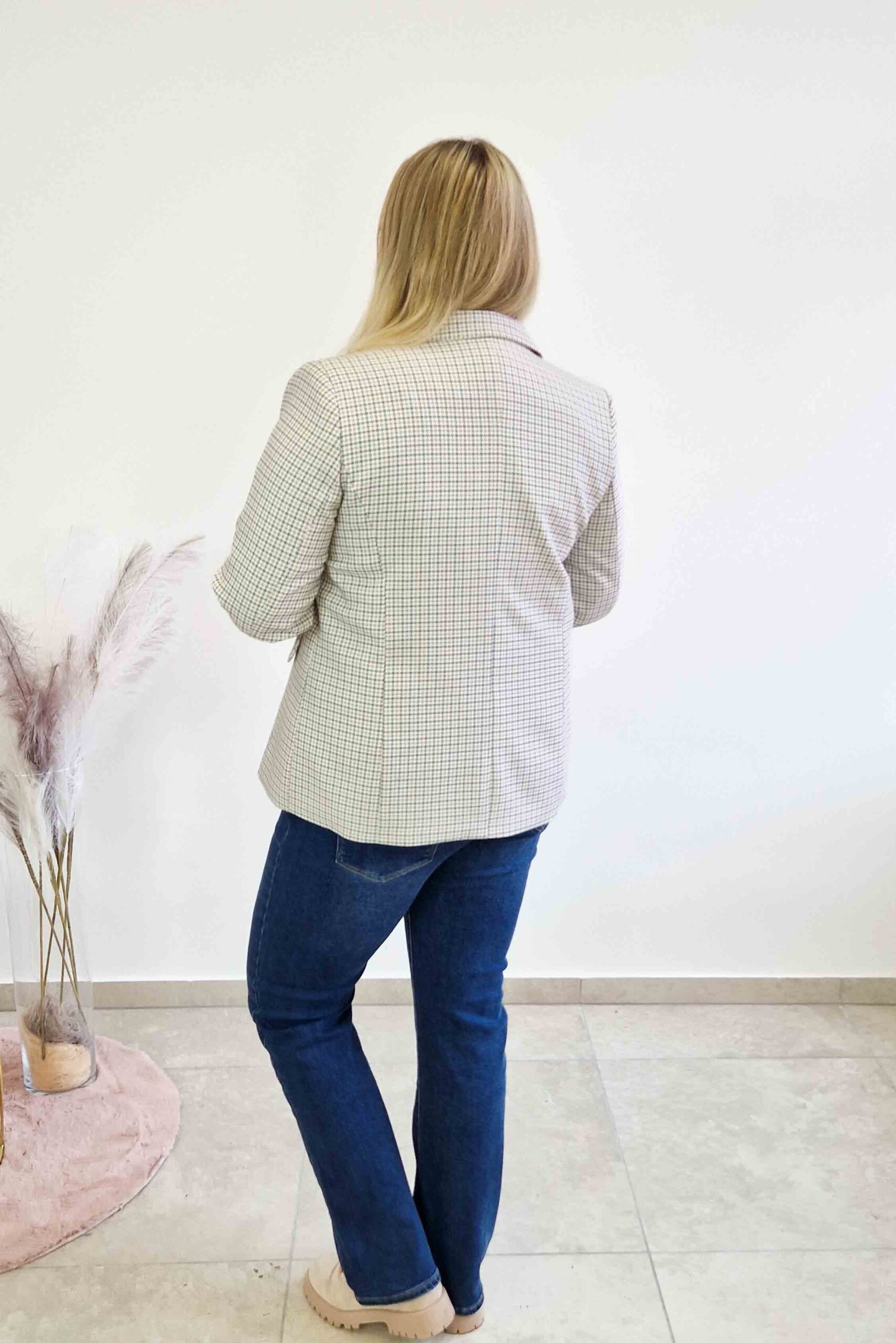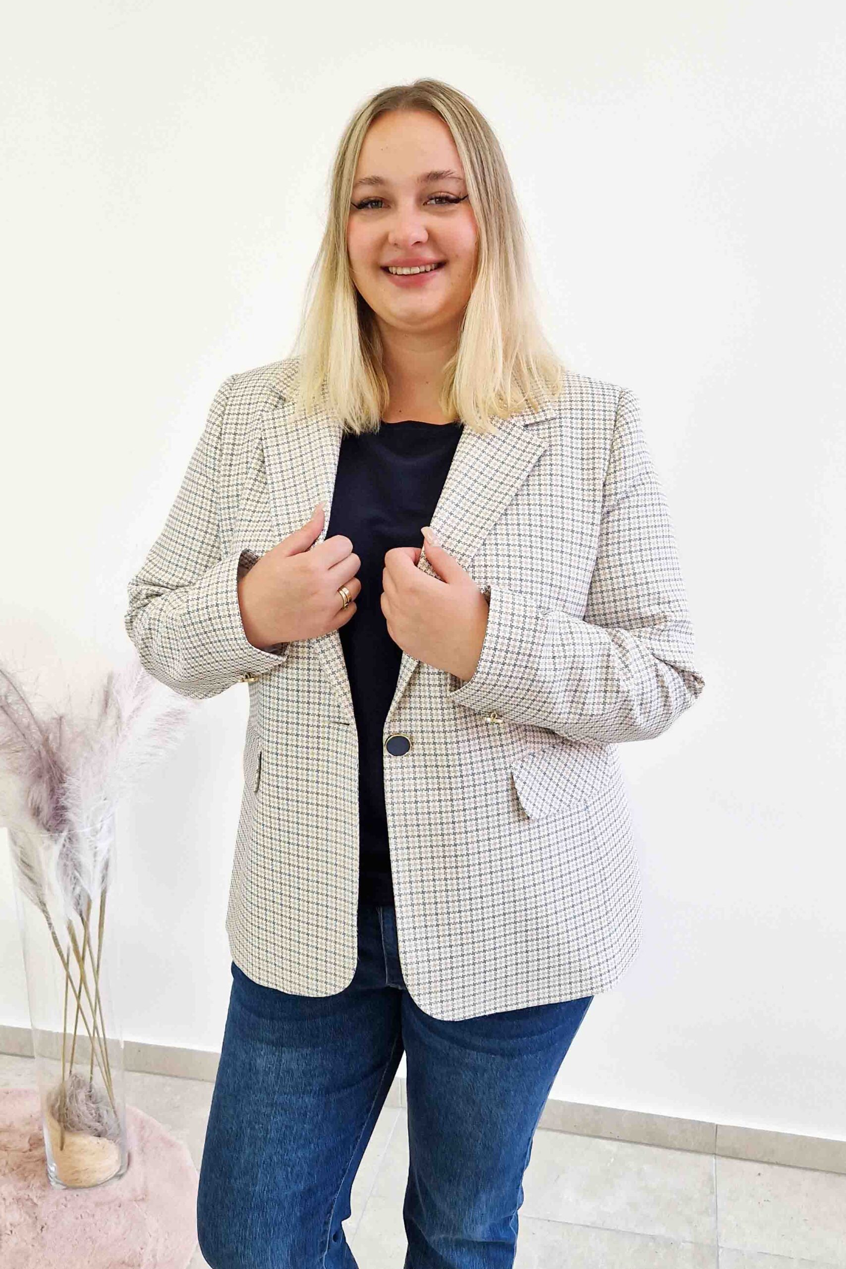 Elegancka Marynarka w Kratę Damska Beżowo-Granatowa