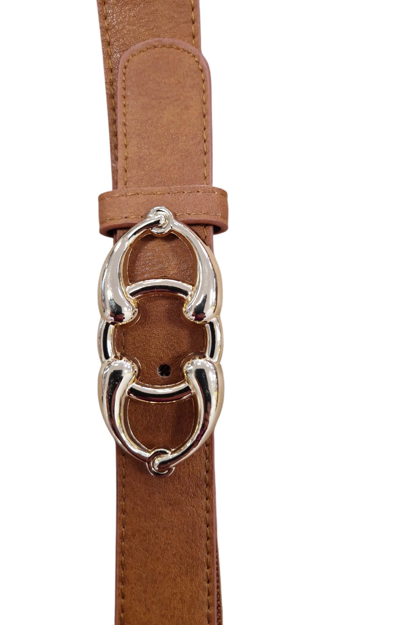 • Podwójna klamra o zaokrąglonym kształcie w kolorze złota