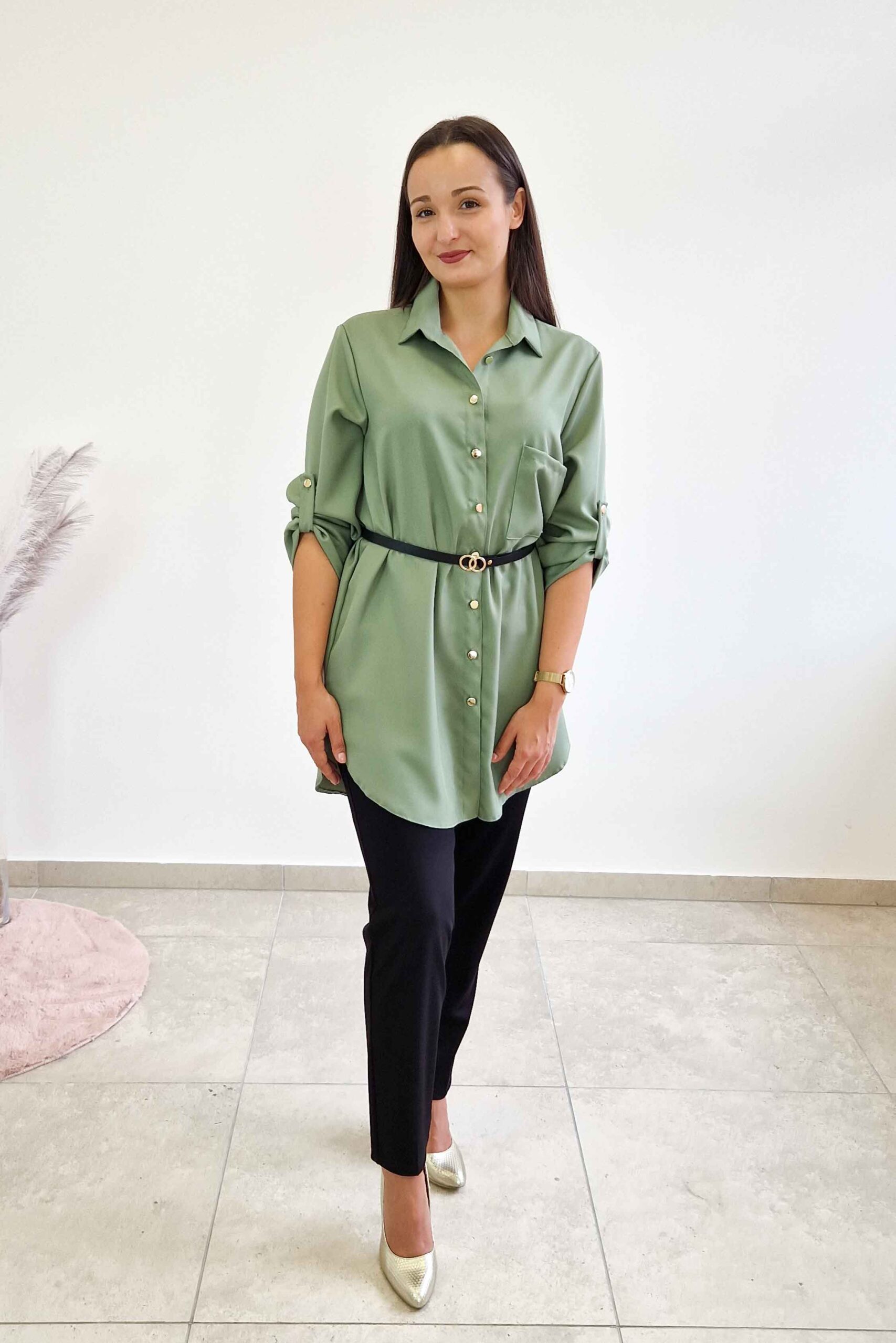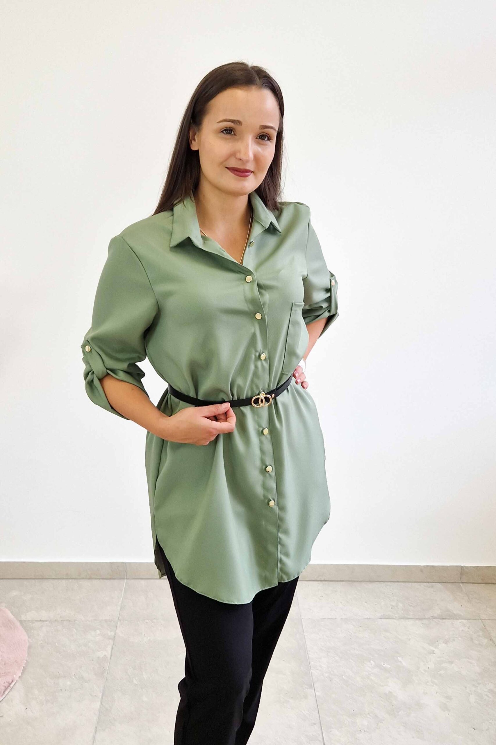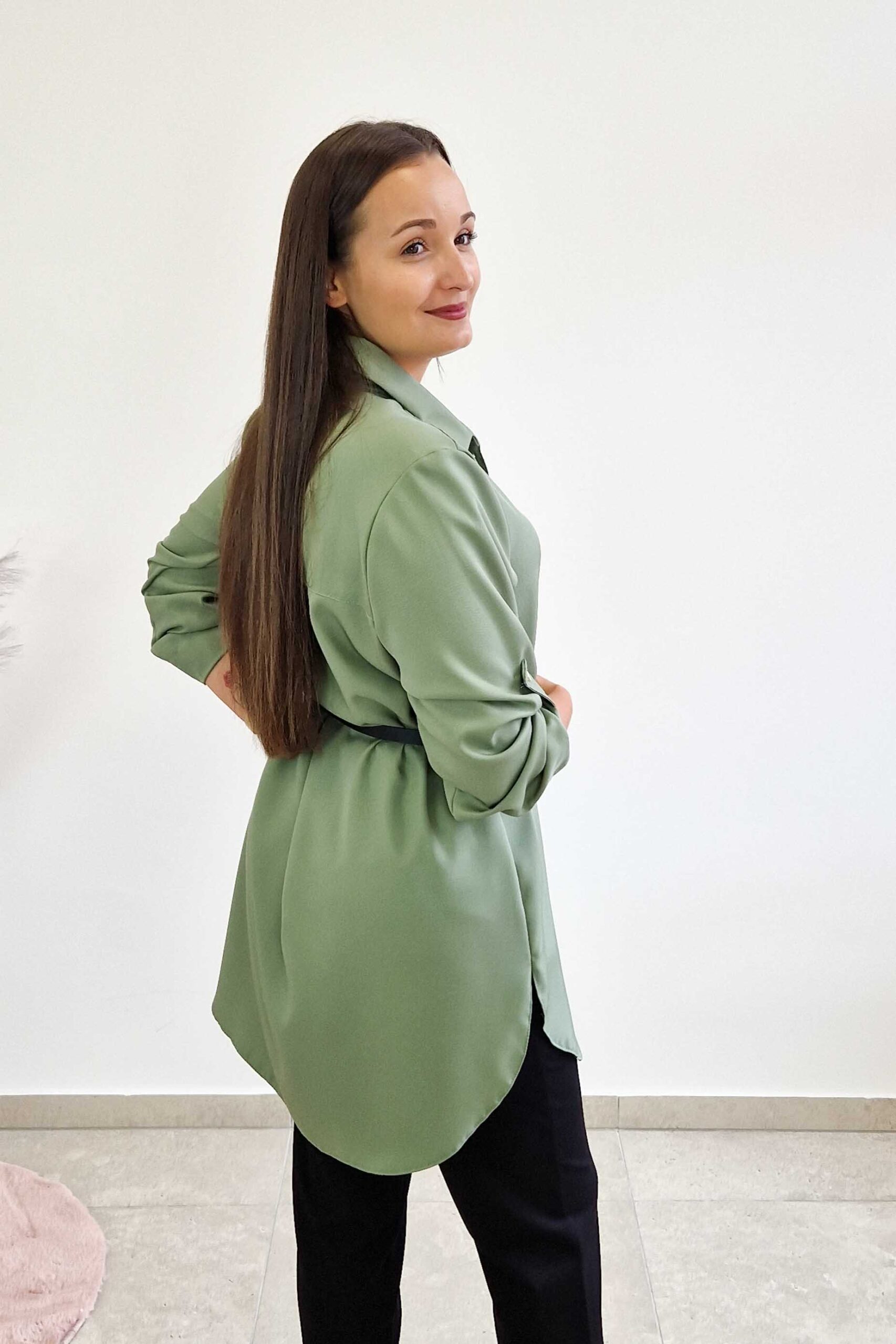 Koszula Tunika Damska z Paskiem Oliwkowa