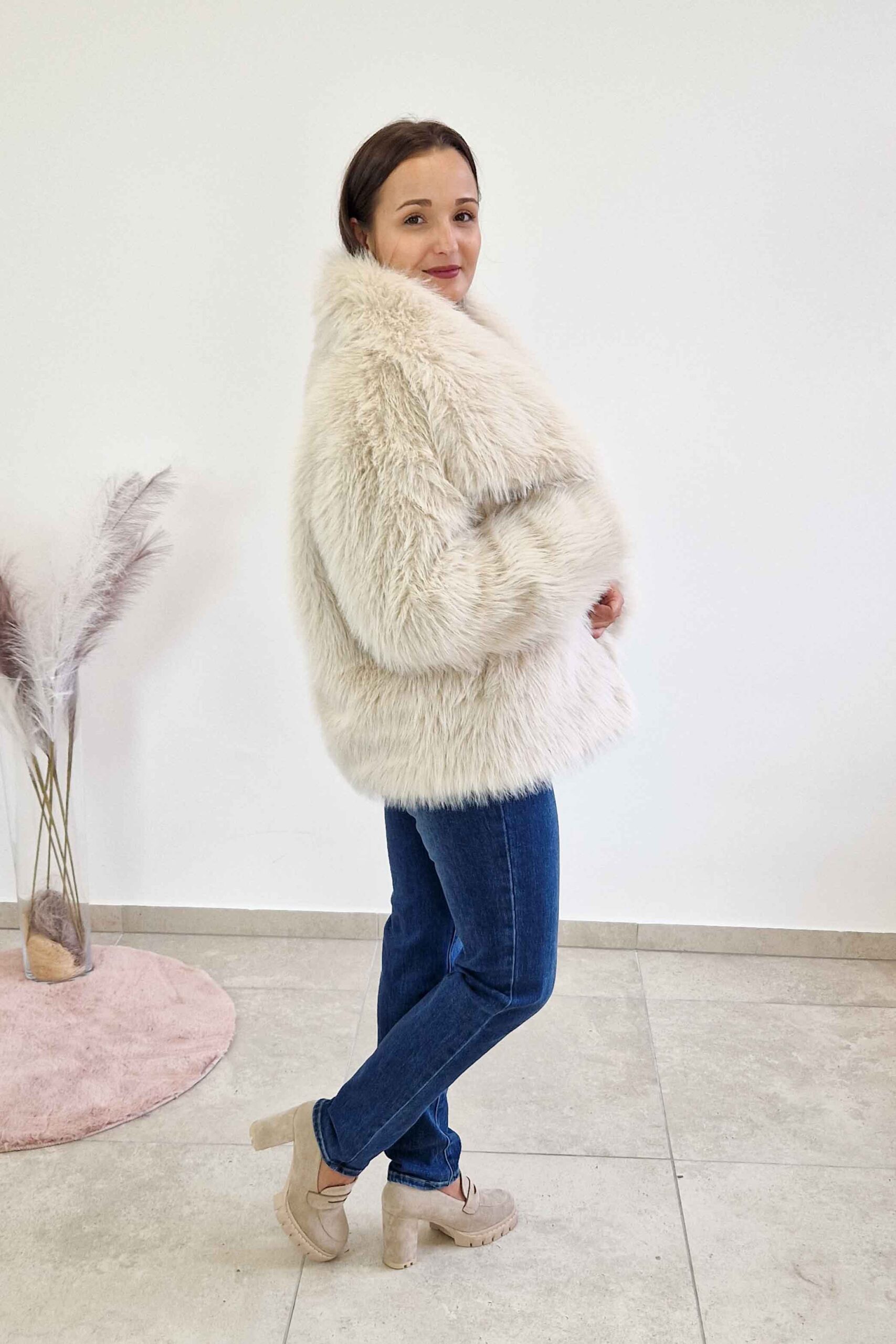 Miękkie, puszyste i lekkie – dodaje szyku każdej stylizacji, a przy tym jest niezwykle przyjemne w noszeniu. Ten model w kolorze beżowym lub niebieskim świetnie sprawdzi się zarówno na co dzień, jak i na wieczorne wyjście.