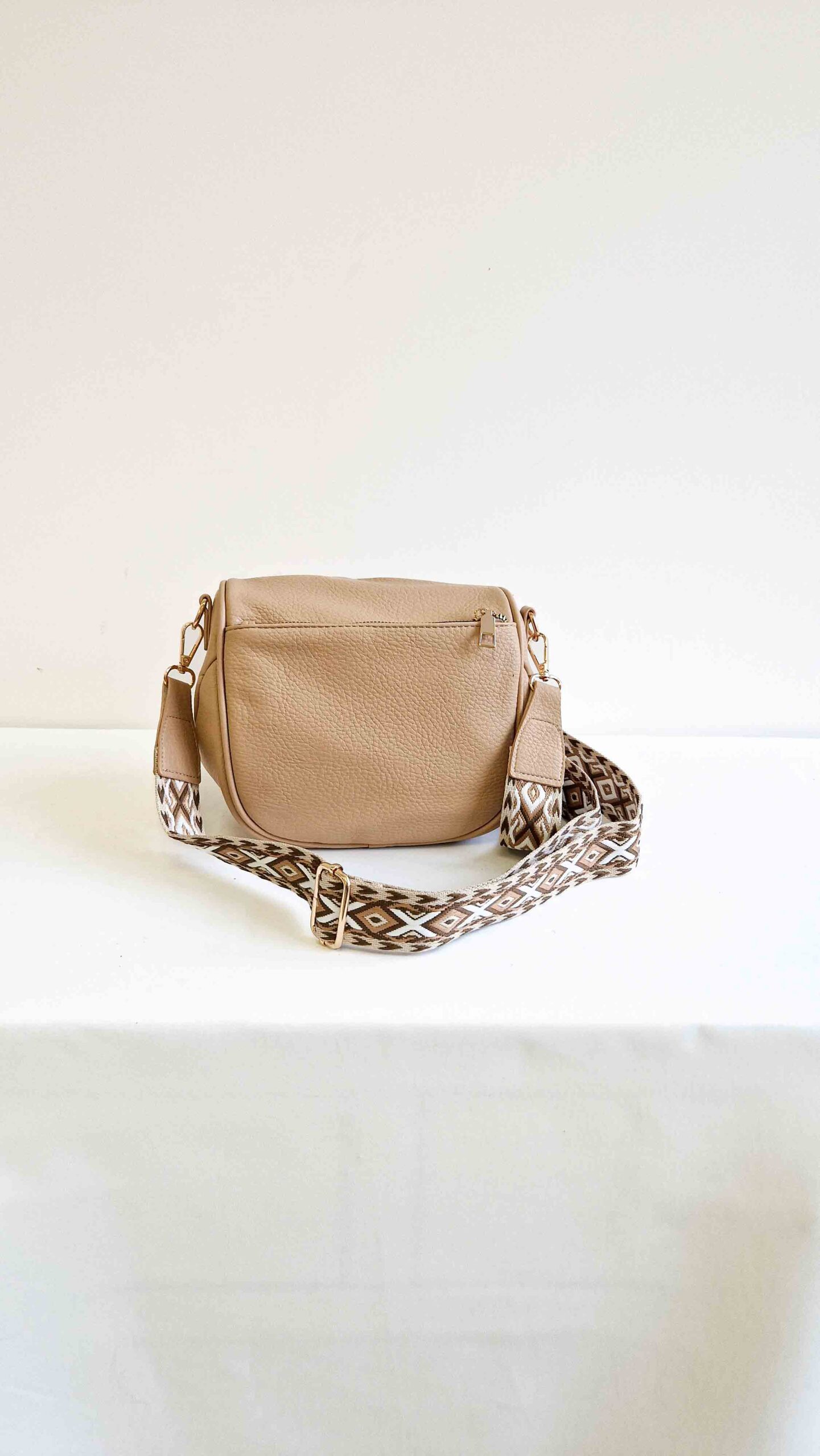 Ten model to doskonałe połączenie miejskiego szyku z funkcjonalnością plecaka. Dzięki swojej unikalnej bryle i szerokiemu, wzorzystemu paskowi, listonoszka zyskuje wyrazisty, sportowy charakter, który świetnie przełamuje klasyczne stylizacje. Jest to idealna torebka na spacer, rower czy weekendowy wyjazd – wszędzie tam, gdzie potrzebujesz wygody i swobody ruchów.