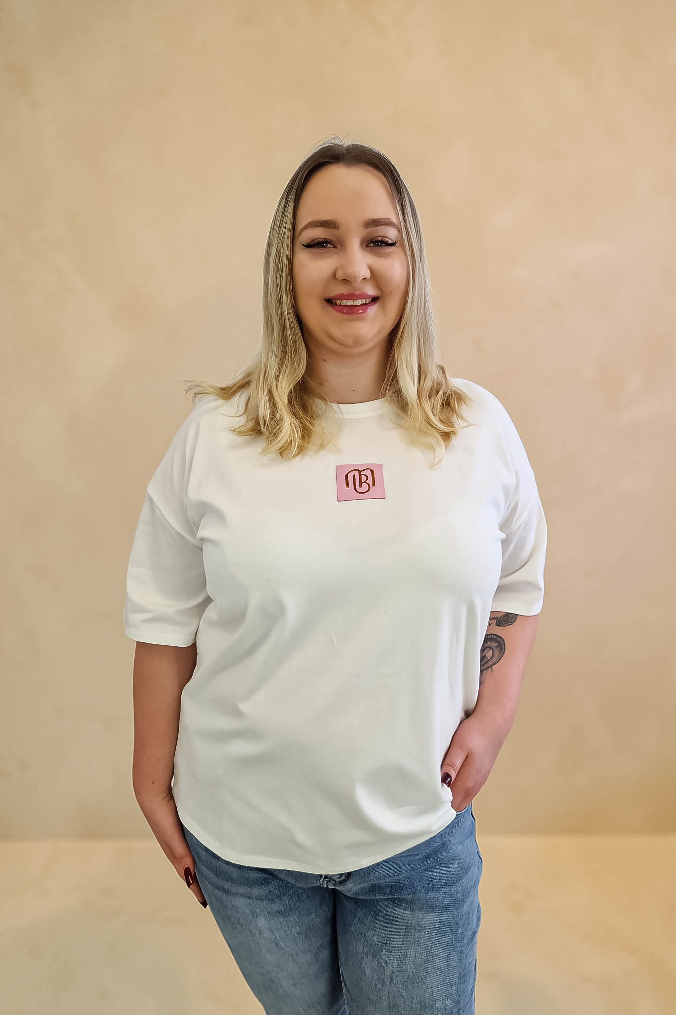 Fason typu lekki oversize z obniżoną linią ramion to absolutny hit ostatnich sezonów – nie tylko zapewnia pełną swobodę ruchów, ale również rewelacyjnie układa się na różnych typach sylwetki. Krótki rękaw i klasyczny dekolt pod szyję sprawiają, że bluzka jest niezwykle uniwersalna. Możesz ją nosić solo do jeansów lub jako bazę pod marynarkę czy rozpinany kardigan.