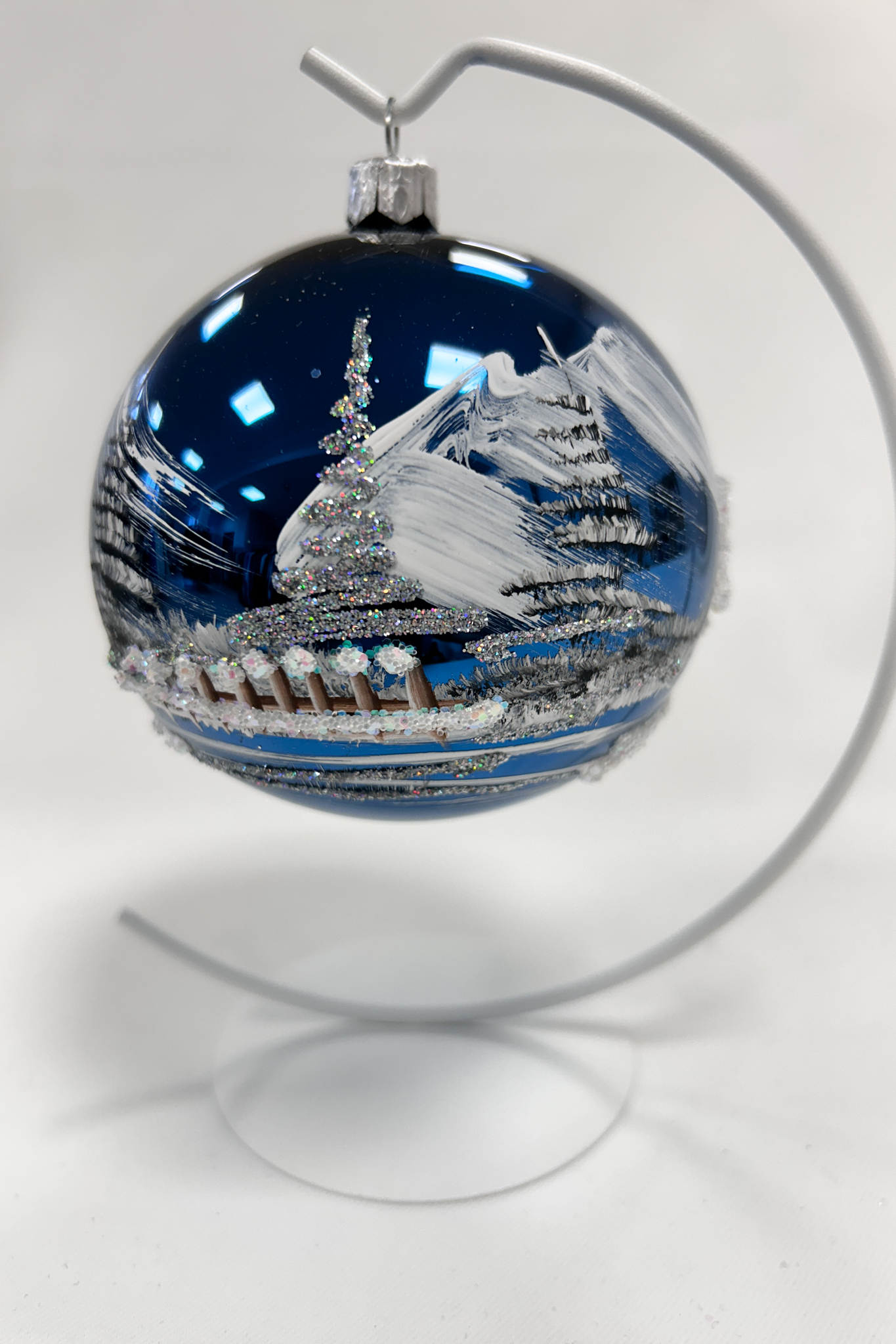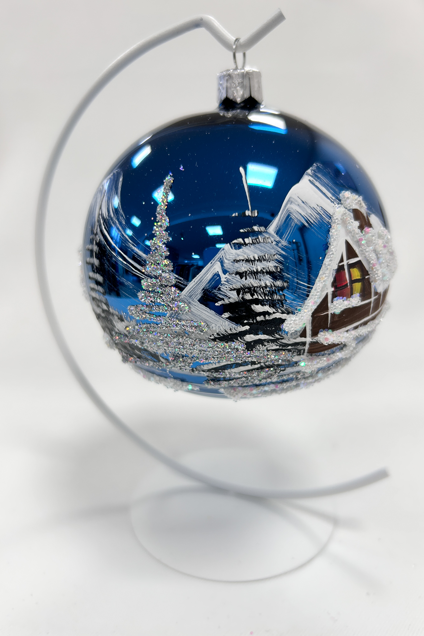 Dodaj swojemu wnętrzu odrobinę magii i elegancji dzięki, ręcznie malowanej bombce świątecznej ze stojakiem. Ta wyjątkowa ozdoba o wysokości zachwyca starannie odwzorowanymi zimowymi pejzażami – sceneriami z zaśnieżonymi domkami, lasami i szczegółami, które wprowadzają niepowtarzalny świąteczny klimat. Każda bombka to małe dzieło sztuki, ręcznie wykonane z dbałością o każdy detal, dzięki czemu każda jest unikalna i jedyna w swoim rodzaju.