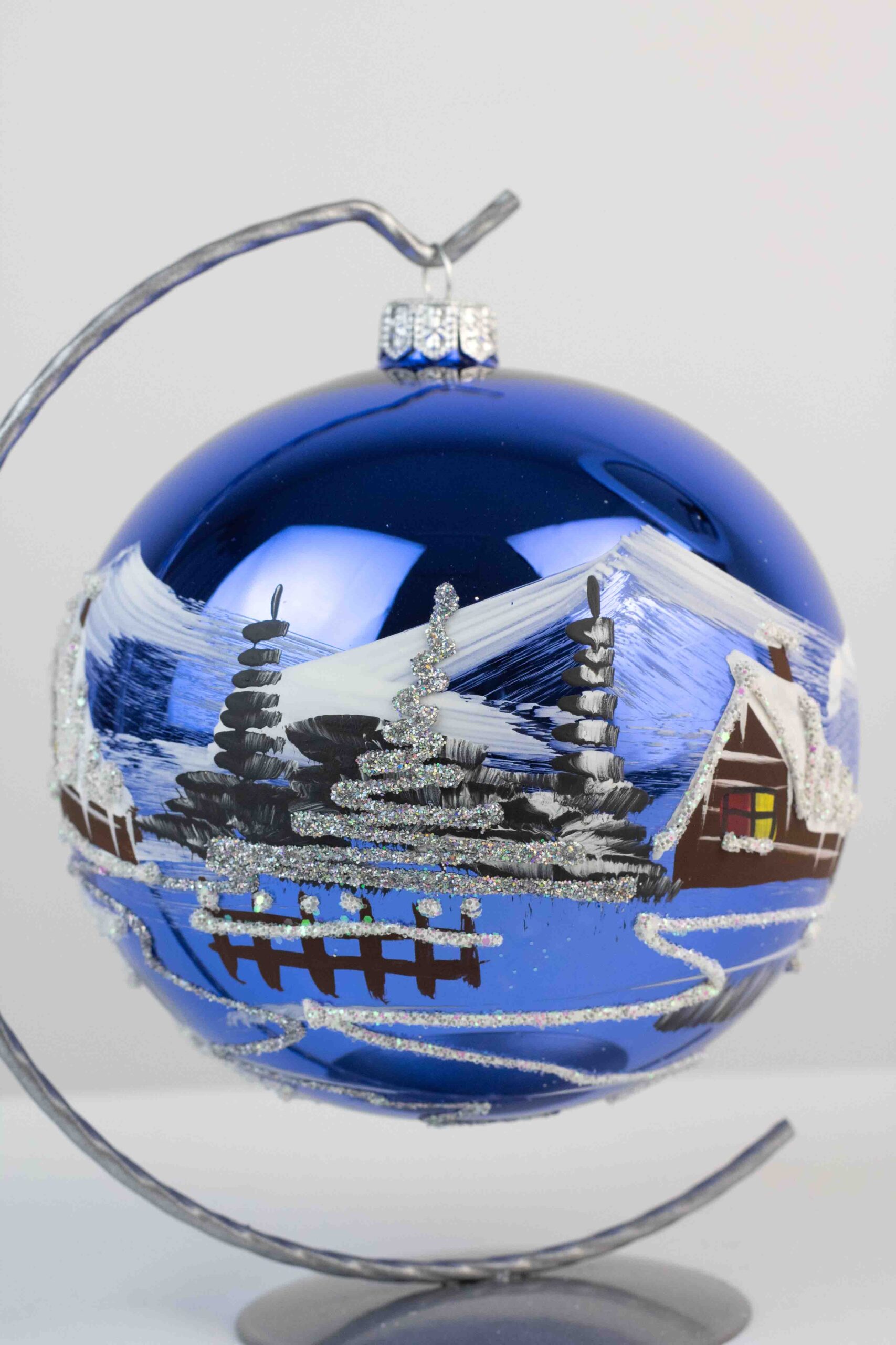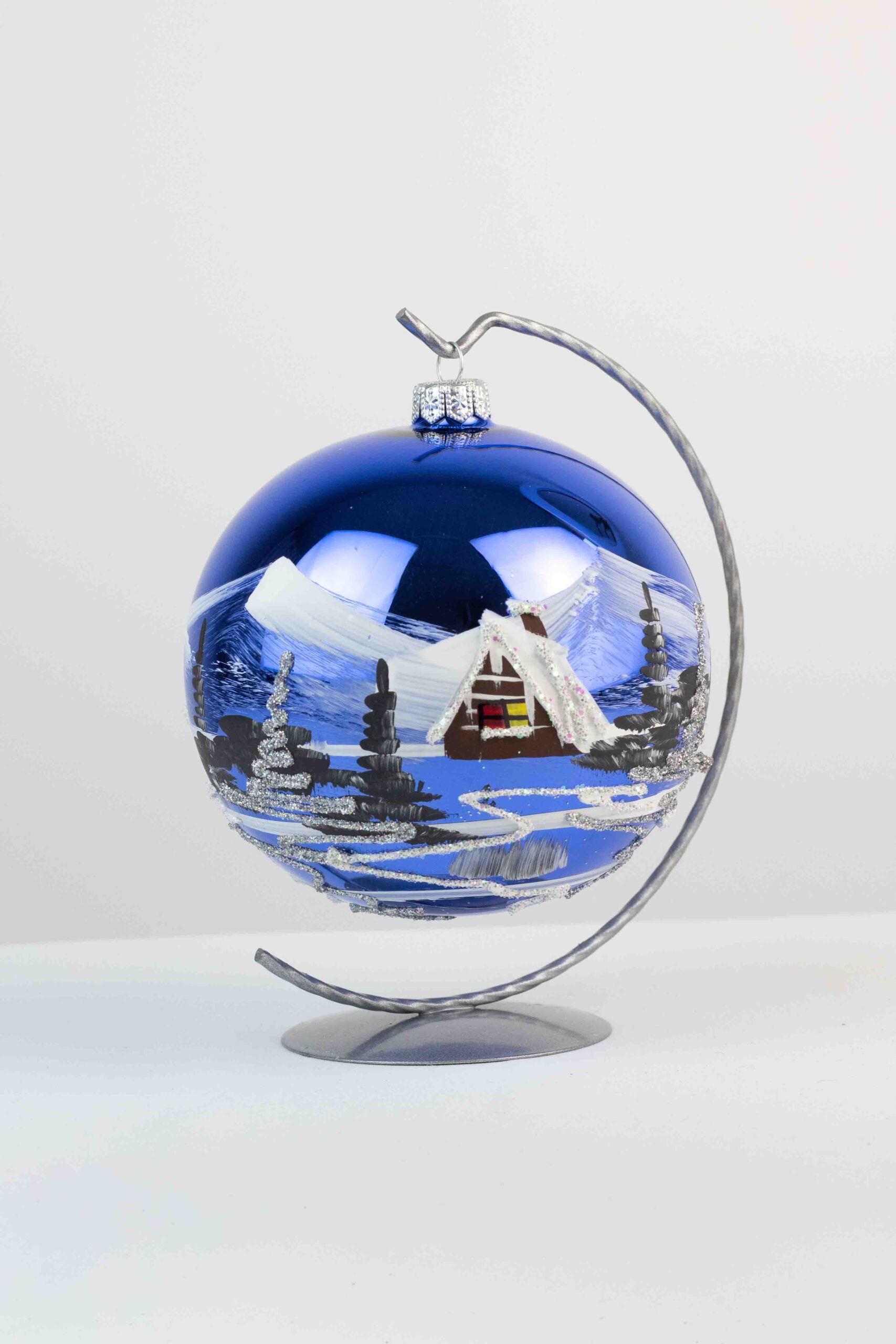 Dodaj swojemu wnętrzu odrobinę magii i elegancji dzięki, ręcznie malowanej bombce świątecznej ze stojakiem. Ta wyjątkowa ozdoba o wysokości zachwyca starannie odwzorowanymi zimowymi pejzażami – sceneriami z zaśnieżonymi domkami, lasami i szczegółami, które wprowadzają niepowtarzalny świąteczny klimat. Każda bombka to małe dzieło sztuki, ręcznie wykonane z dbałością o każdy detal, dzięki czemu każda jest unikalna i jedyna w swoim rodzaju.