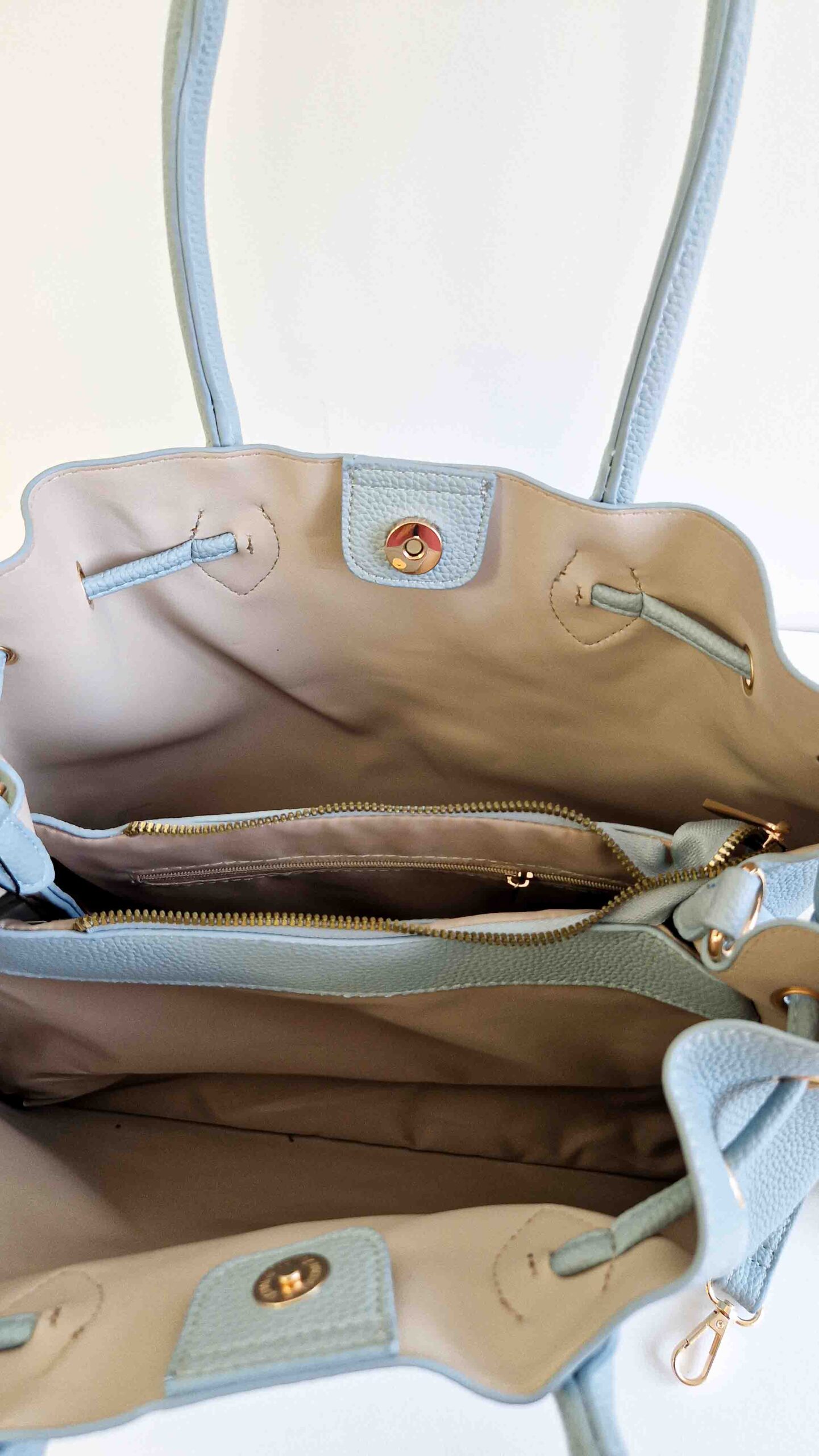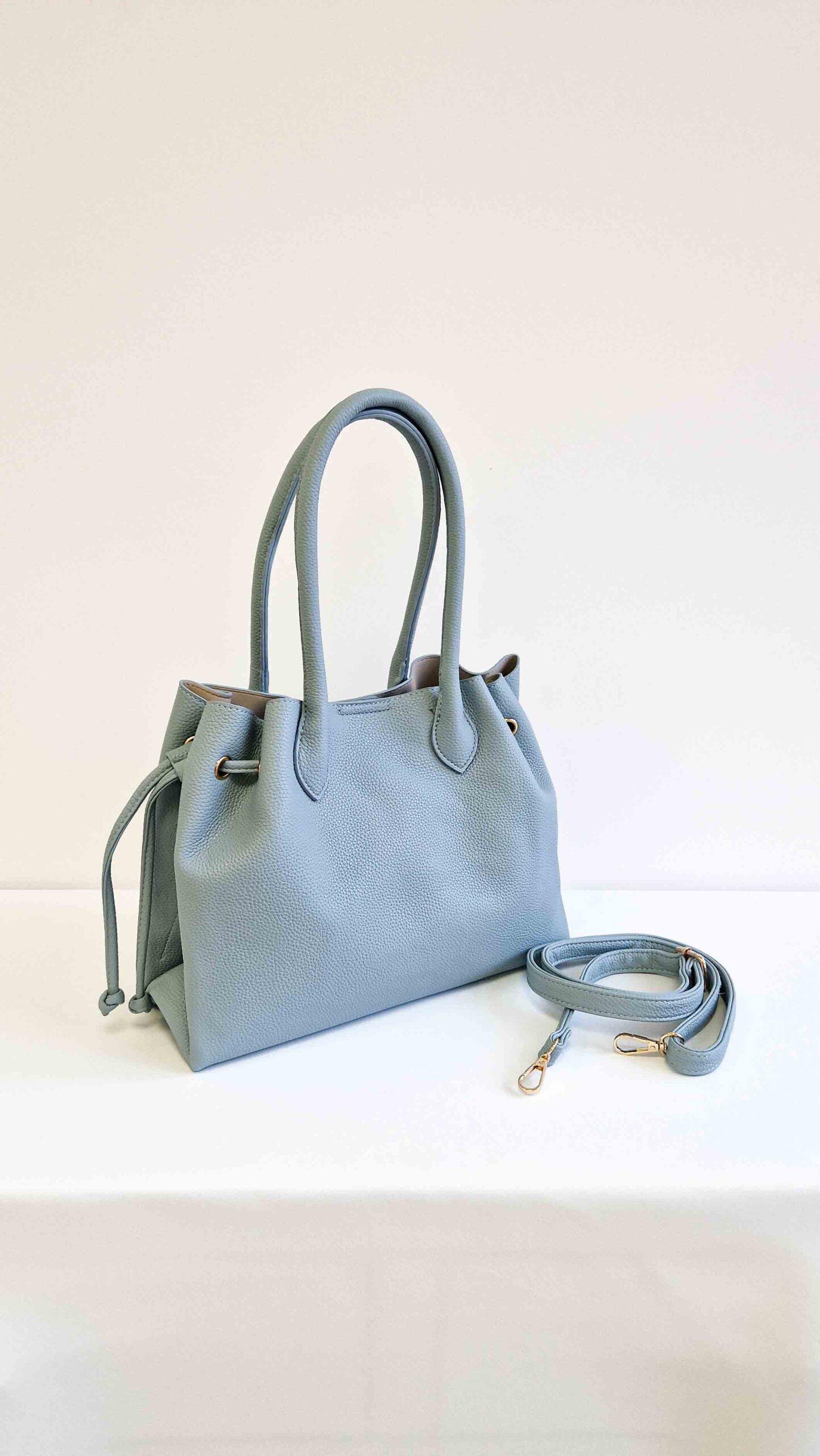Ta duża torebka na ramię pasuje do niemal każdej stylizacji – od luźnych zestawów z jeansami i trampkami, po bardziej kobiece looki z płaszczem czy sukienką. Dzięki praktycznym wymiarom, jest to torebka, która mieści format A4, stając się niezastąpionym kompanem podczas intensywnego dnia. Dostępna w czterech stonowanych kolorach: popielatym, czarnym, beżowym oraz niebieskim, łatwo wkomponuje się w Twoją garderobę.