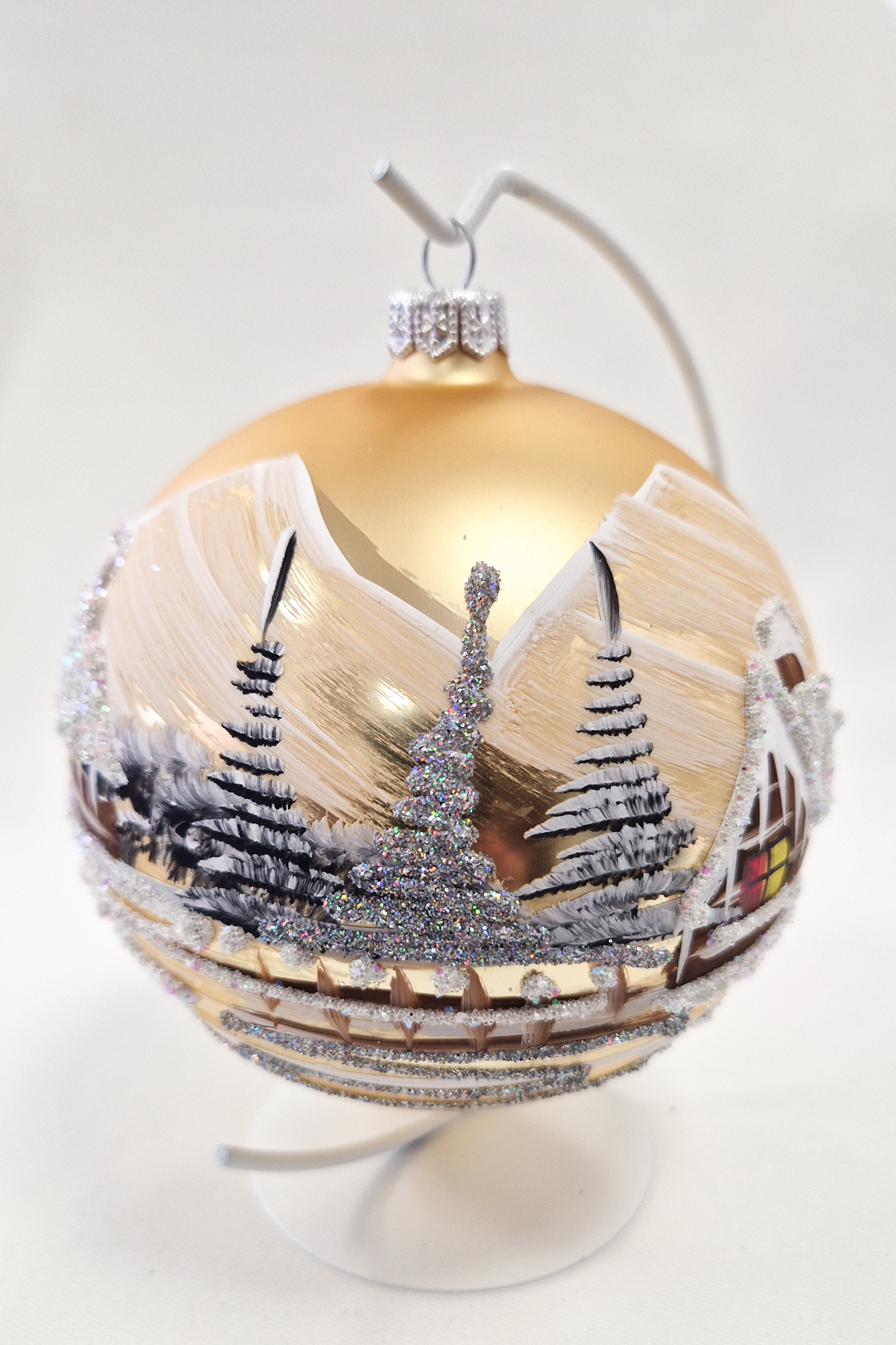 Ręcznie Malowana Bombka na Stojaku z Pejzażem Zimowym Duża 120