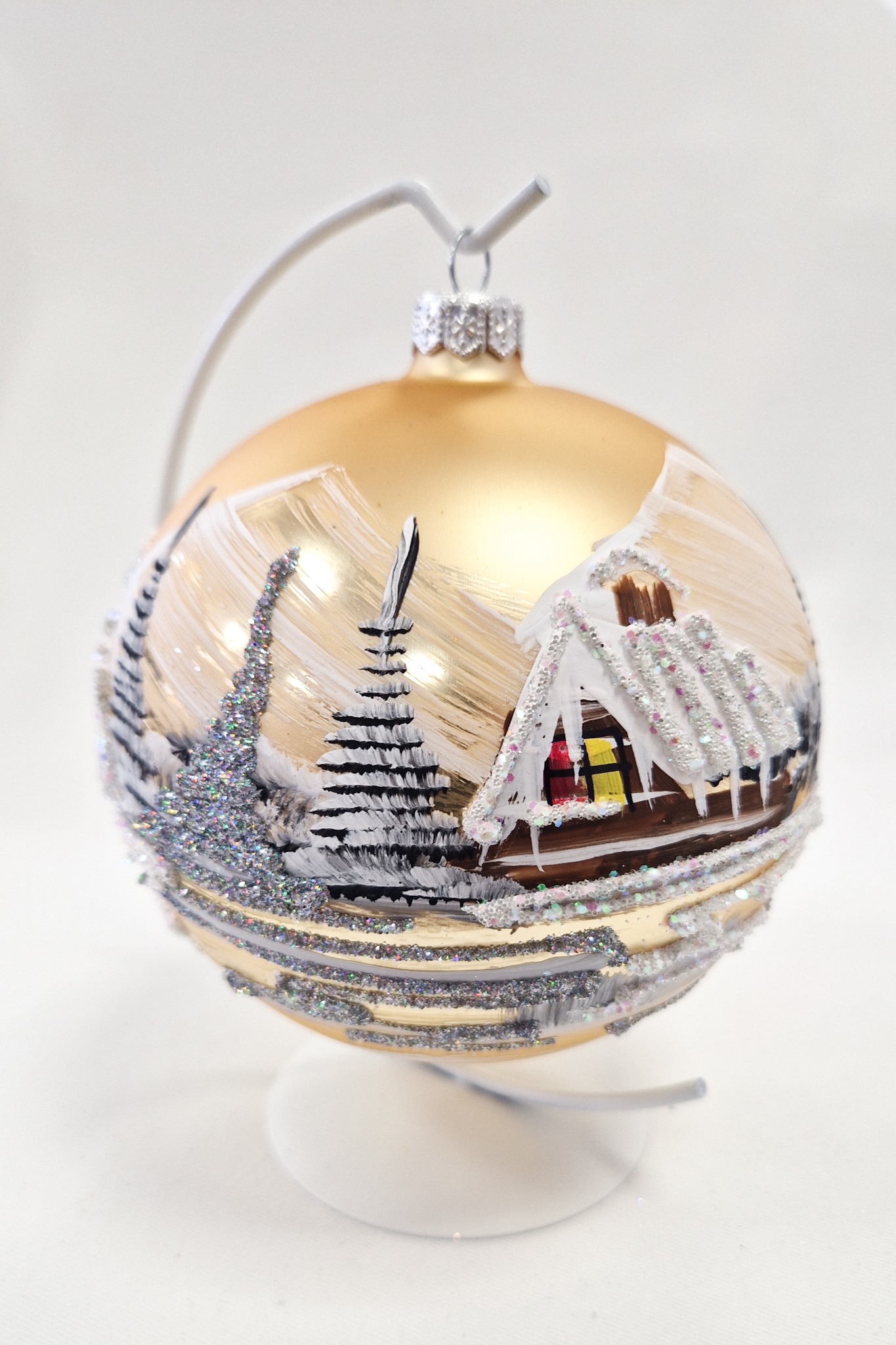Ręcznie Malowana Bombka na Stojaku z Pejzażem Zimowym Mała 100