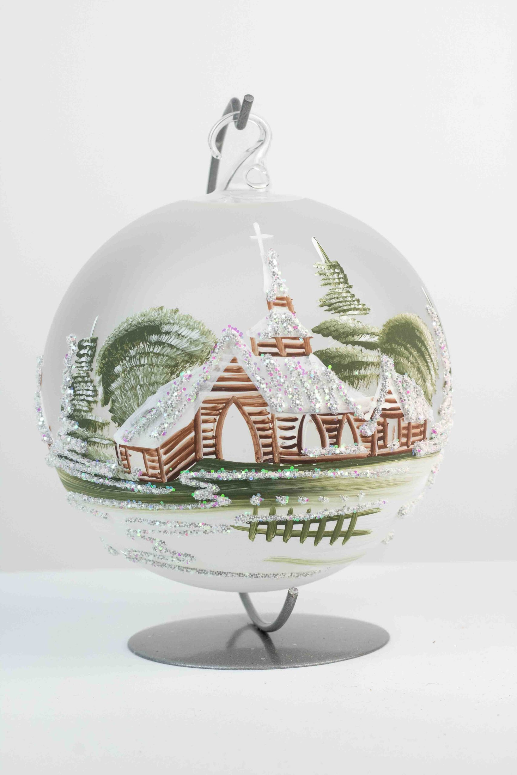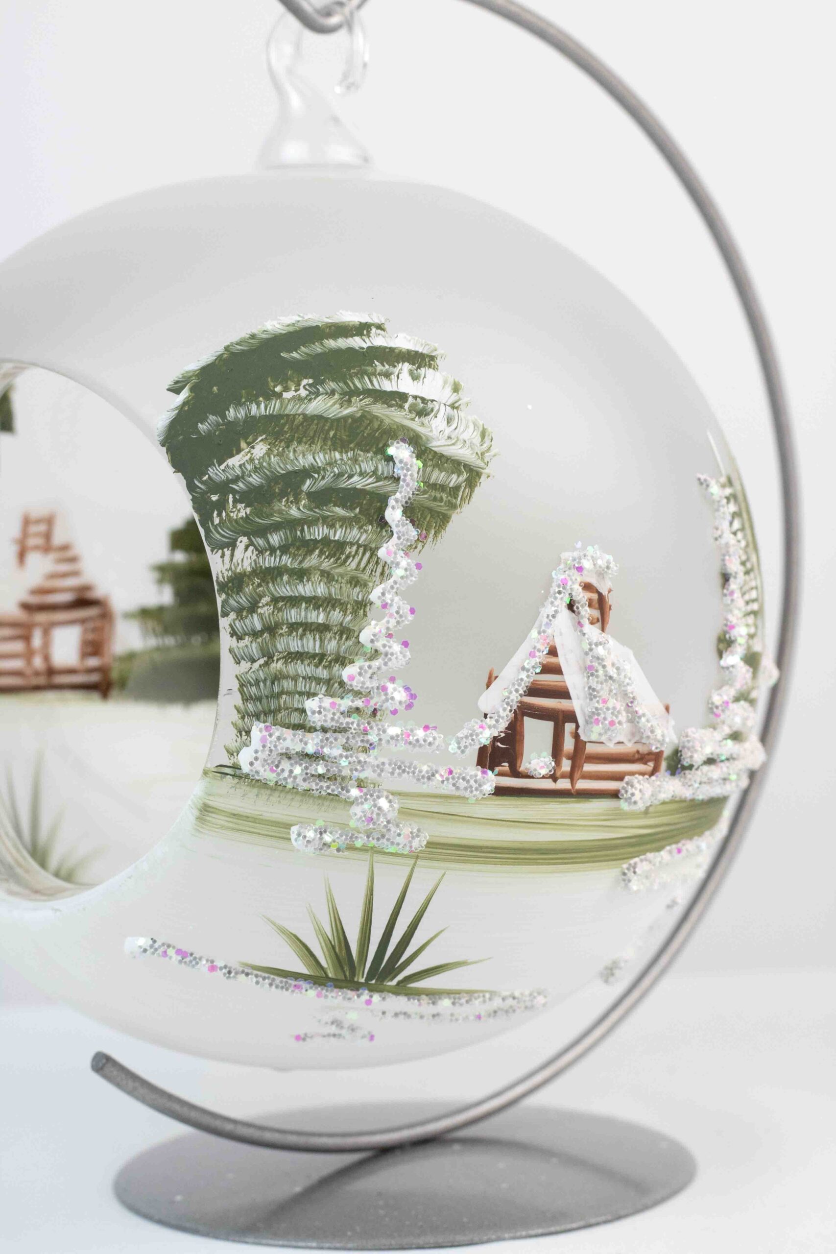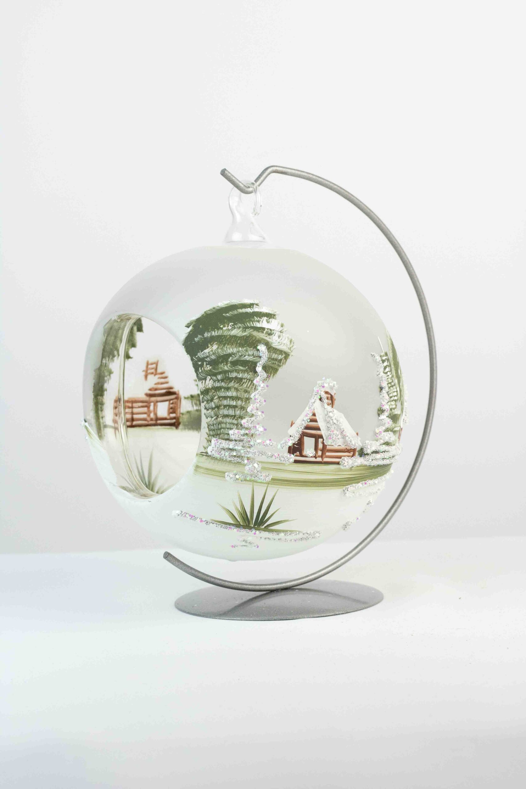 Dodaj swojemu wnętrzu odrobinę magii dzięki unikatowej, ręcznie wykonanej szklanej bombce o wysokości 17 cm. Ta elegancka ozdoba przedstawia starannie odwzorowany zimowy pejzaż – scenerię z zaśnieżonymi domkami i lasami, która zachwyca dbałością o detale i precyzją wykonania. Każda bombka jest efektem ręcznej pracy, dzięki czemu stanowi wyjątkową dekorację, której nie znajdziesz w masowej produkcji.
