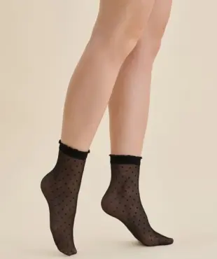 Damskie skarpetki Puntina 20 den to bestseller wśród skarpetek Gabrielli. Damskie skarpetki zdobią drobne, regularne kropki. Wyrazisty ściągacz imitujący koronkę, nadaje skarpetkom lekkości i dziewczęcego wyrazu.