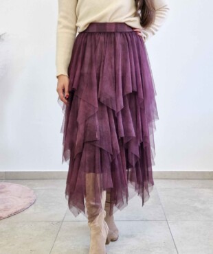 W odcieniach śliwkowym i czekoladowym idealnie wpisuje się w jesienno-zimowe trendy, tworząc ciepły, stylowy look. Możesz ją zestawić z golfem, swetrem oversize lub dopasowanym body. W wersji casualowej sprawdzi się z botkami, a w eleganckiej – z kozakami na obcasie i delikatną biżuterią. To spódnica damska, która sprawi, że każda stylizacja nabierze wyjątkowego charakteru.