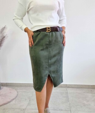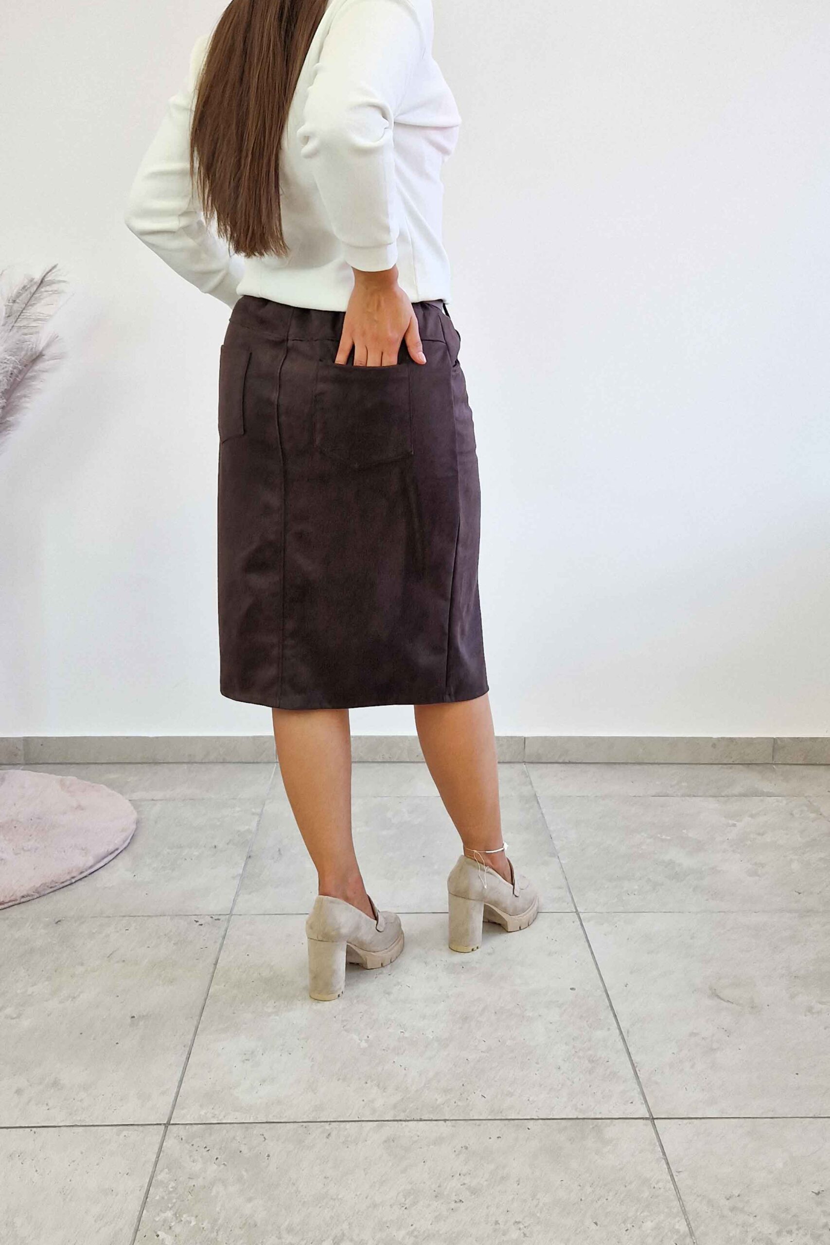 Zamów już teraz spódnicę midi z irchy z paskiem i ciesz się stylizacjami, które zawsze wyglądają kobieco i modnie!