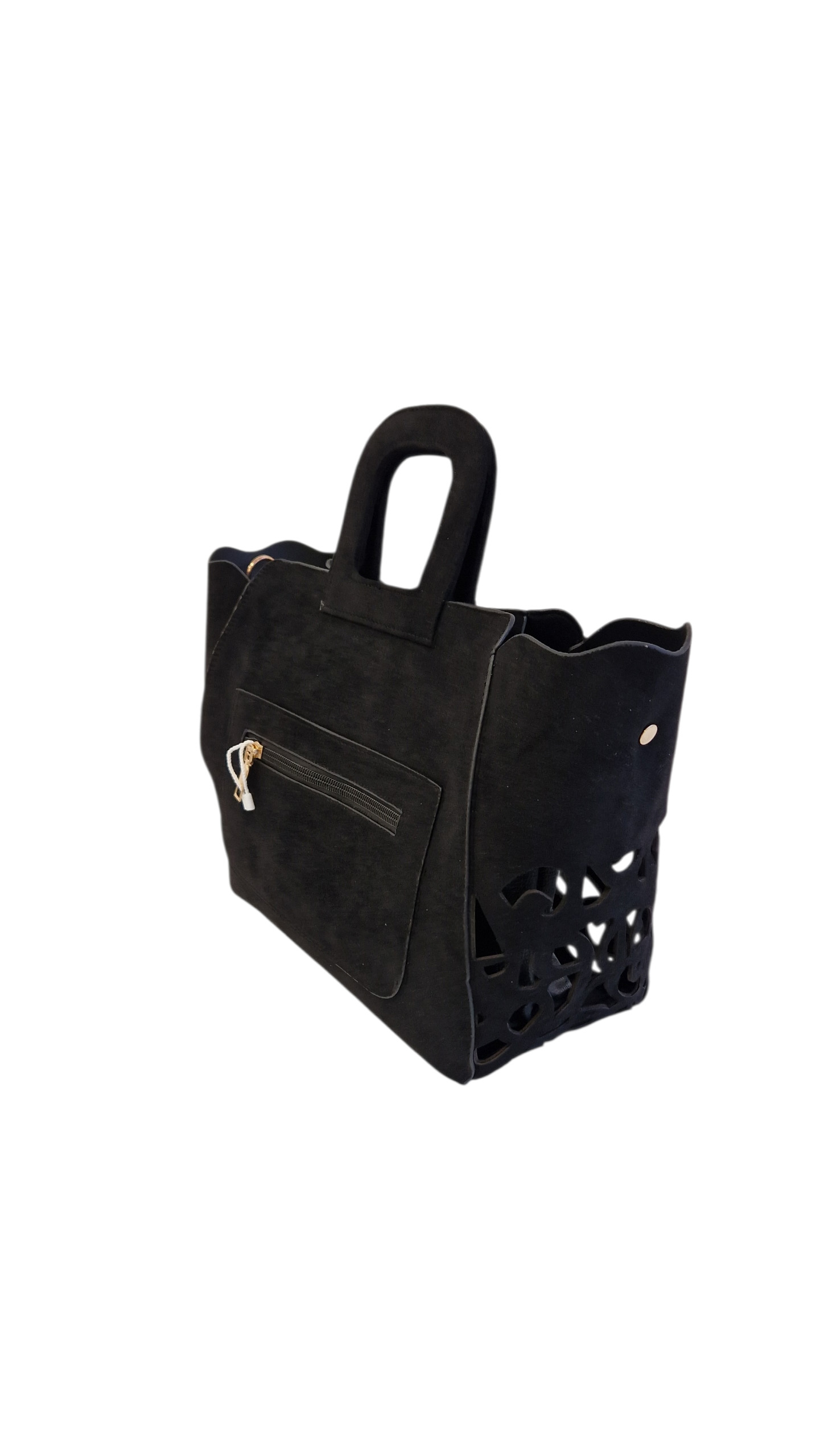 Dzięki unikalnej, ażurowej wycinance, ta torebka zyskuje lekki i bardzo nowoczesny charakter. To idealna propozycja dla kobiet, które szukają dodatku łączącego styl boho z miejską elegancją. Świetnie sprawdzi się na co dzień, do pracy czy na popołudniowe spotkanie, stanowiąc główny punkt każdej stylizacji. Model ten oferujemy w dwóch wersjach: klasycznej czarnej zamszowej oraz subtelnej, gładkiej beżowej eko-skórze.
