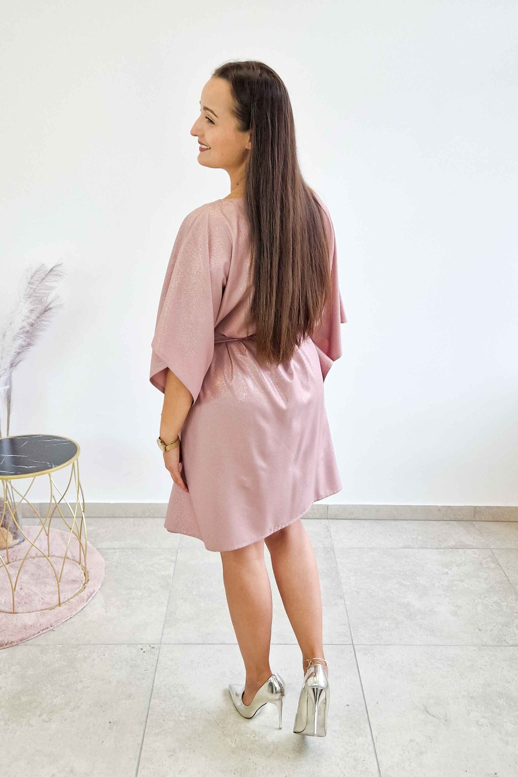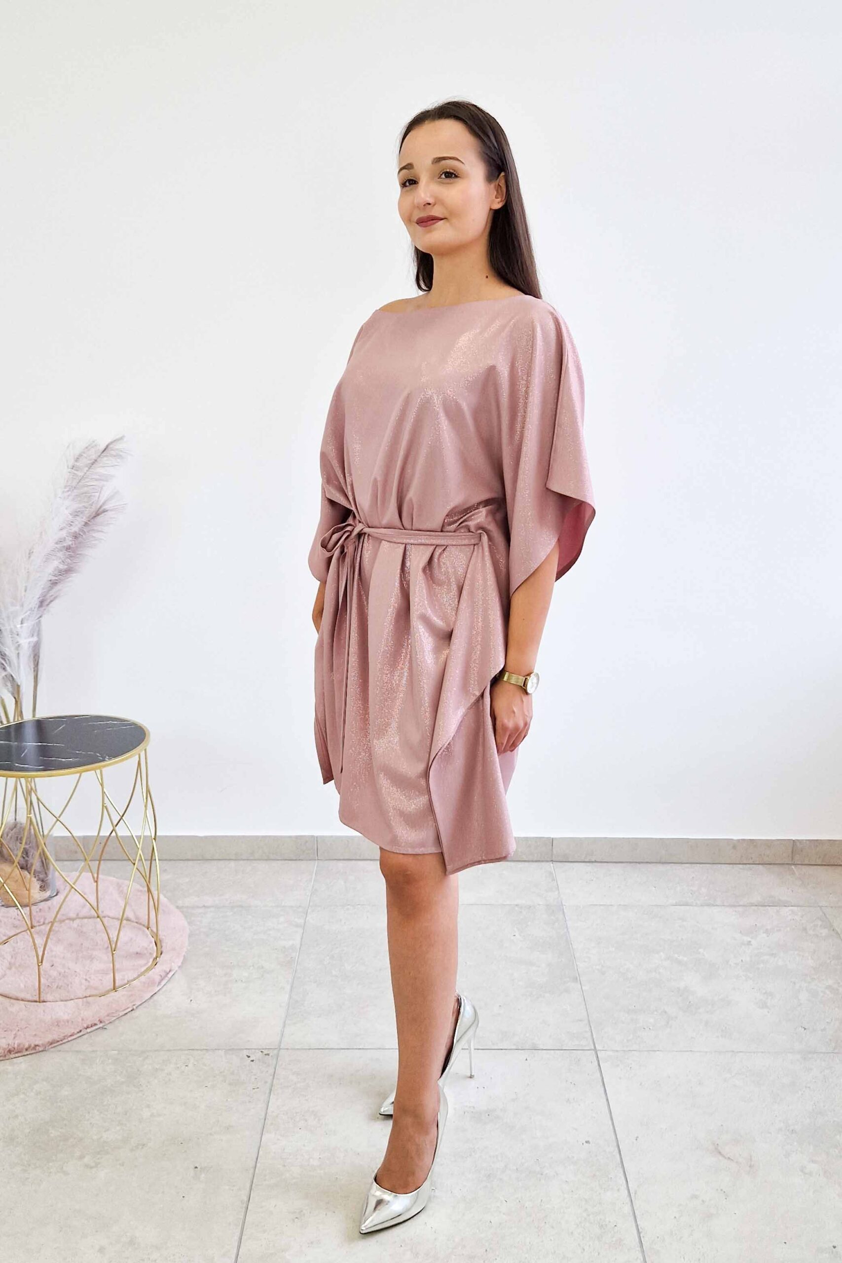 Ta sukienka damska midi nietoperz to połączenie prostoty, wygody i ponadczasowego stylu. Dzięki fasonowi oversize idealnie dopasowuje się do różnych typów sylwetek – wygląda równie dobrze na rozmiarze S, jak i XL. Wiązanie w pasie pozwala dowolnie regulować dopasowanie, podkreślając talię i tworząc kobiecą linię.