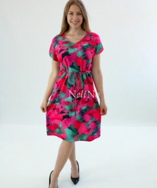 Wiązany pasek w talii pozwala modelować figurę, a dekolt w serek dodaje kobiecości. To świetna letnia sukienka na co dzień, którą założysz do pracy, na zakupy czy na rodzinny obiad. Styl boho, komfort i elegancja w jednym – bez zbędnego wysiłku.