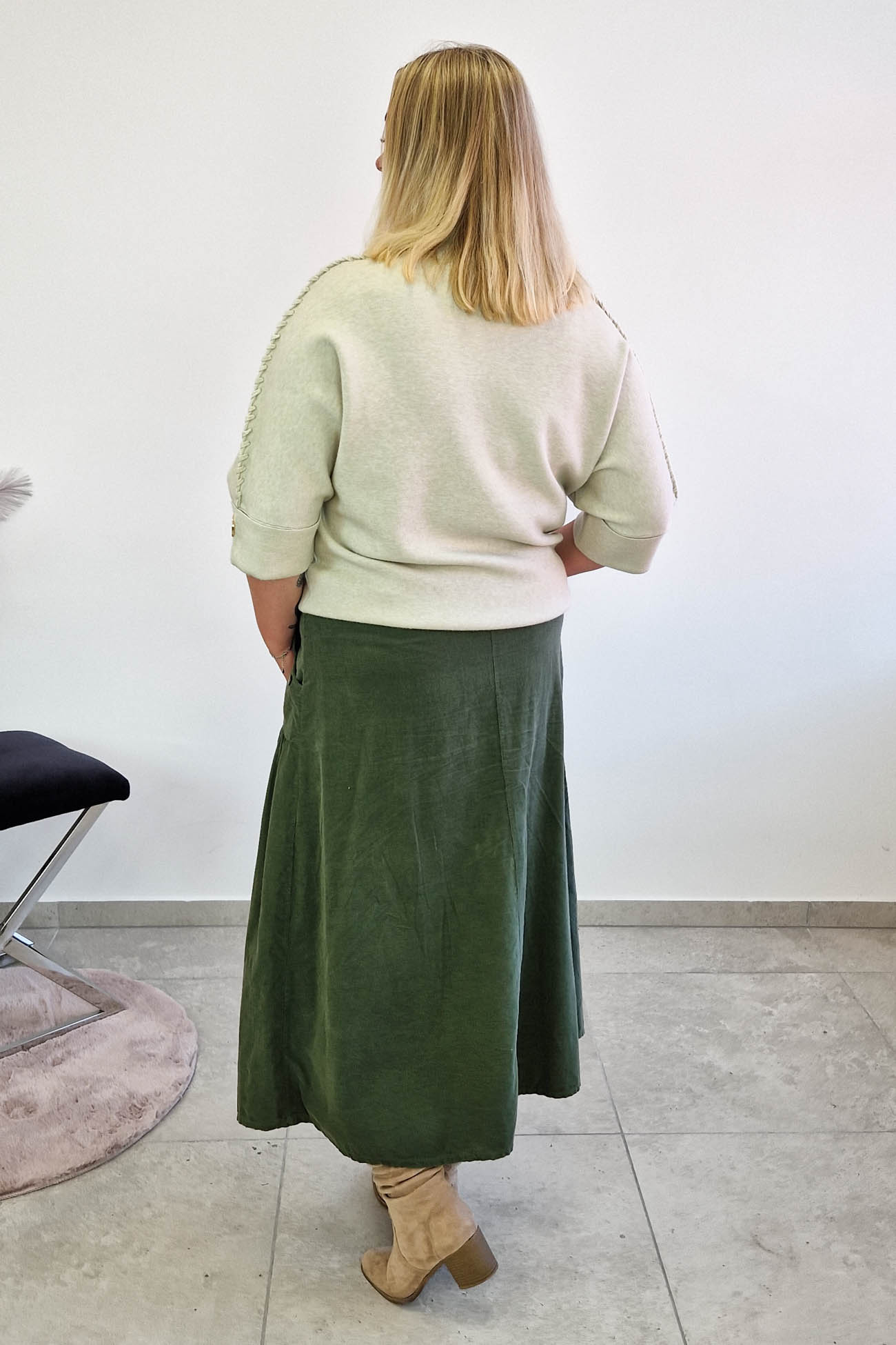 Miękka dzianina, subtelny dekolt półgolf i efektowny warkocz na rękawie sprawiają, że to model doskonały na co dzień, do pracy i spotkań w gronie znajomych. Ten sweter damski z półgolfem łączy w sobie komfort i elegancję. Dzięki półgolfowi subtelnie wysmukla szyję, a warkocz na rękawie nadaje mu modnego charakteru. To doskonała propozycja dla kobiet, które szukają ciepłego swetra na co dzień, ale jednocześnie chcą wyglądać stylowo i kobieco.