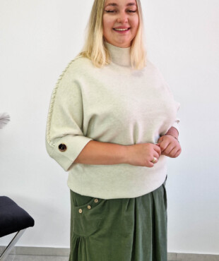 Dzięki miękkiej dzianinie i starannemu wykończeniu, ten sweter damski z guzikami sprawdzi się zarówno w pracy, jak i na spotkaniach towarzyskich. To model, który pokochasz za wygodę, a jednocześnie za ponadczasowy charakter.