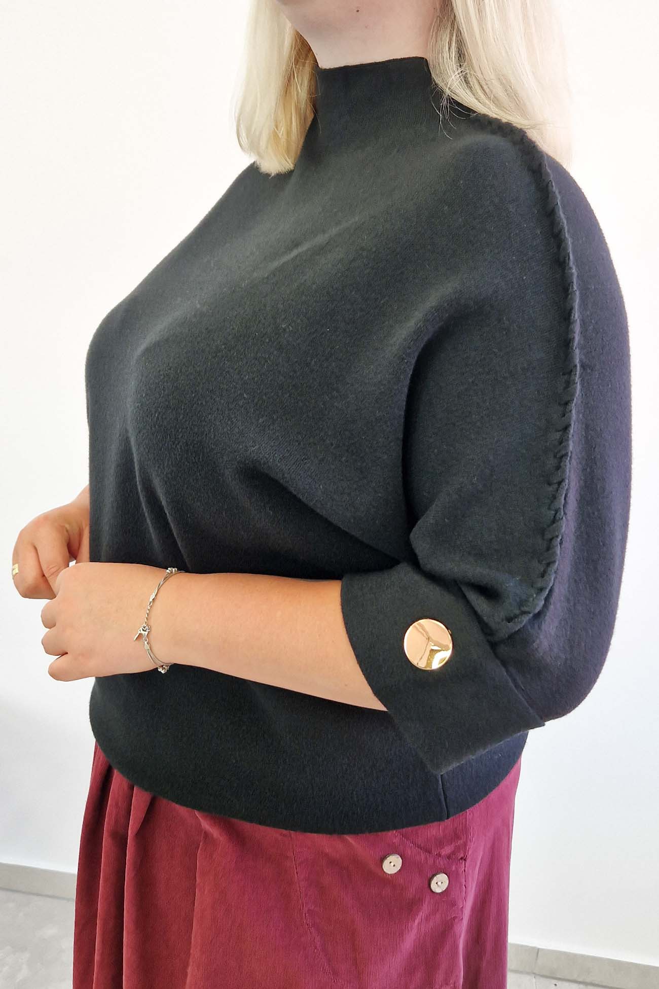 Sweter Damski Półgolf z Warkoczem na Rękawie Czarny