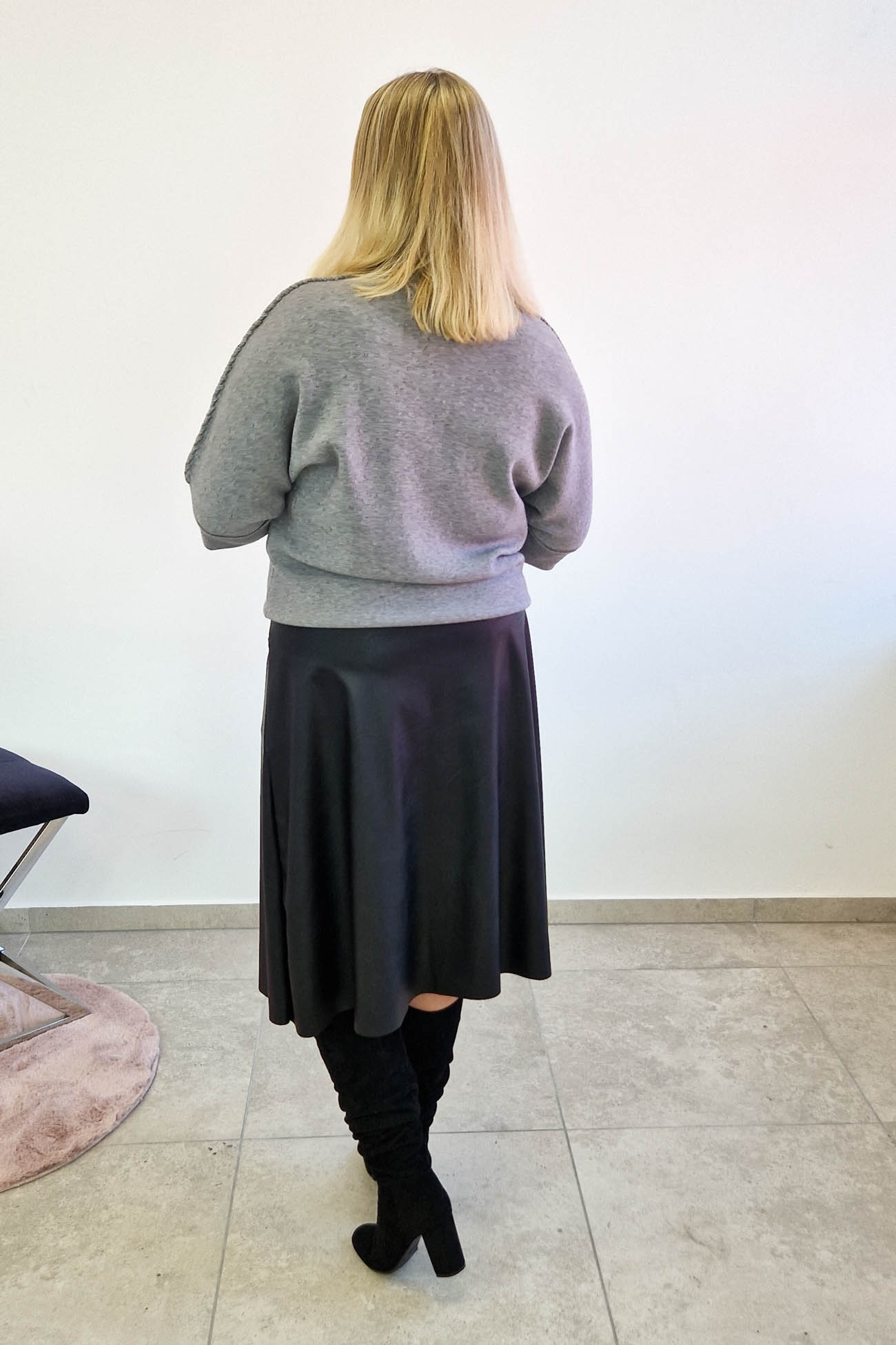 Sweter Damski Półgolf z Warkoczem na Rękawie Popielaty