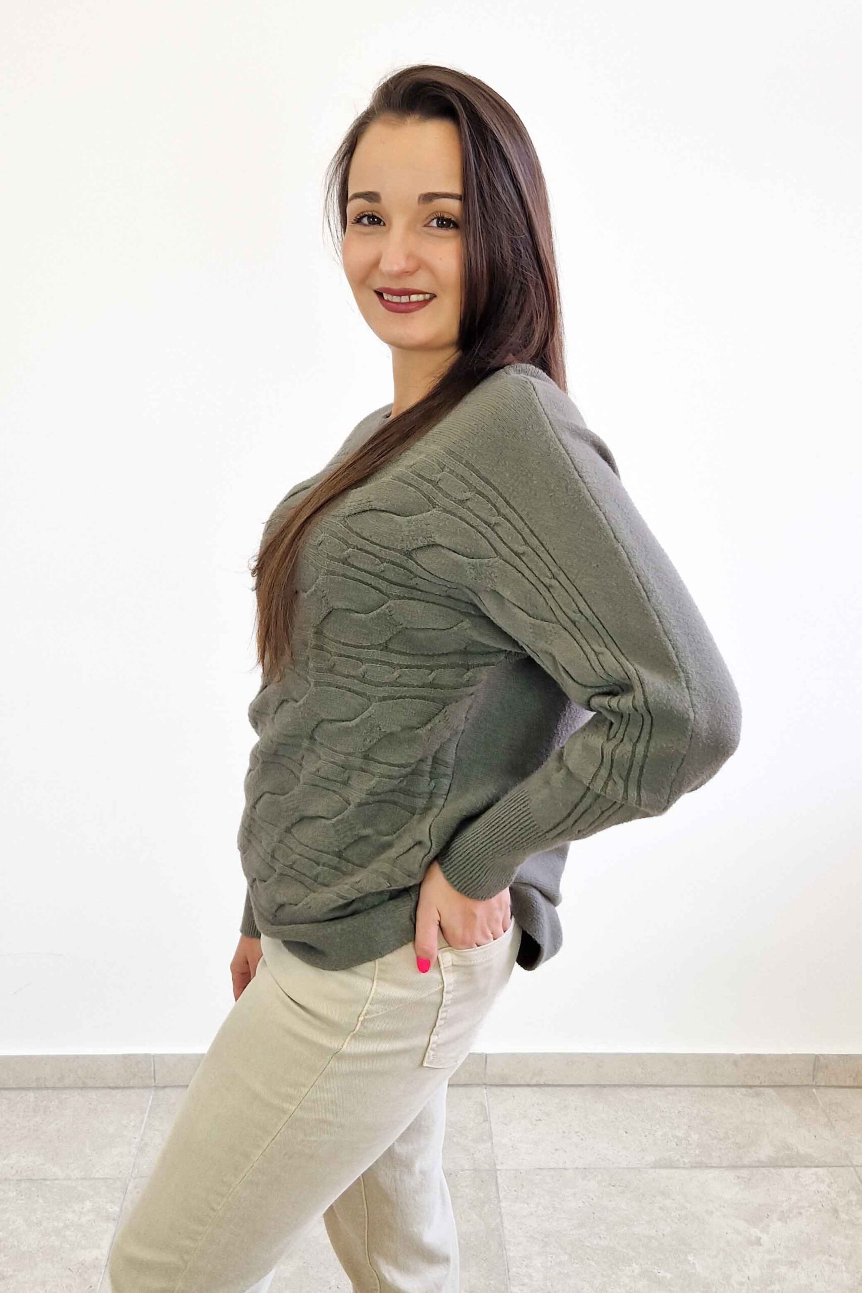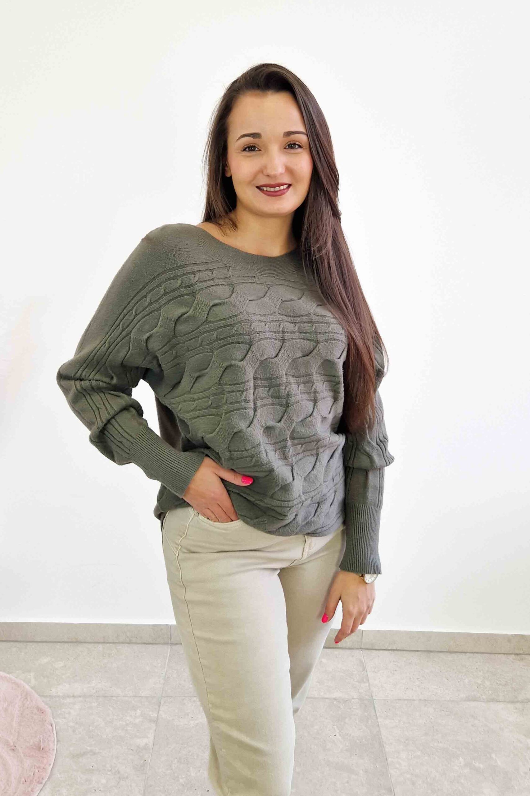 Wyróżnia go piękny, tradycyjny wzór warkocz oraz miękki, przytulny materiał. Dostępny w stonowanych kolorach – eleganckim kremowym swetrze i modnym oliwkowym swetrze – idealnie sprawdzi się jako wygodny sweter na co dzień, który wprowadzi do Twoich stylizacji przytulny, naturalny akcent.