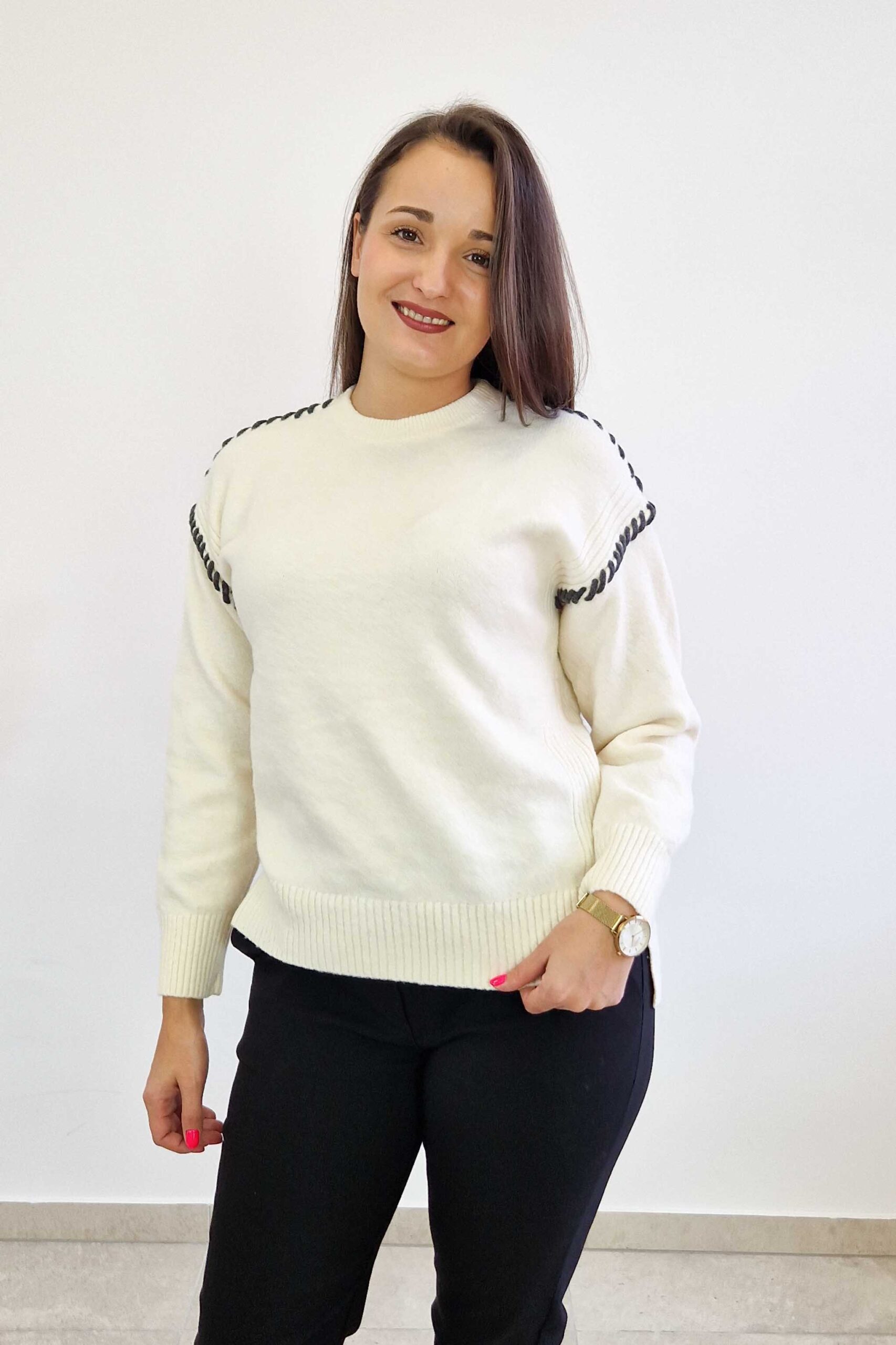 Dzięki luźnemu fasonowi i subtelnym detalom, takim jak dekoracyjne przeszycia na ramionach i rękawach, zyskuje nowoczesny, lekko minimalistyczny charakter. Świetnie sprawdzi się na co dzień, do pracy czy na spotkanie ze znajomymi, gdy chcesz wyglądać modnie i czuć się komfortowo.