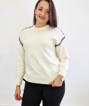 Ten modny sweter damski z długim rękawem to połączenie wygody i ponadczasowej elegancji. Subtelne przeszycia wzdłuż ramion i rękawów nadają mu wyjątkowego charakteru, jednocześnie pozostając w duchu minimalizmu. Miękka wiskoza w składzie sprawia, że sweter jest przyjemny w dotyku, nie gryzie i świetnie układa się na sylwetce.