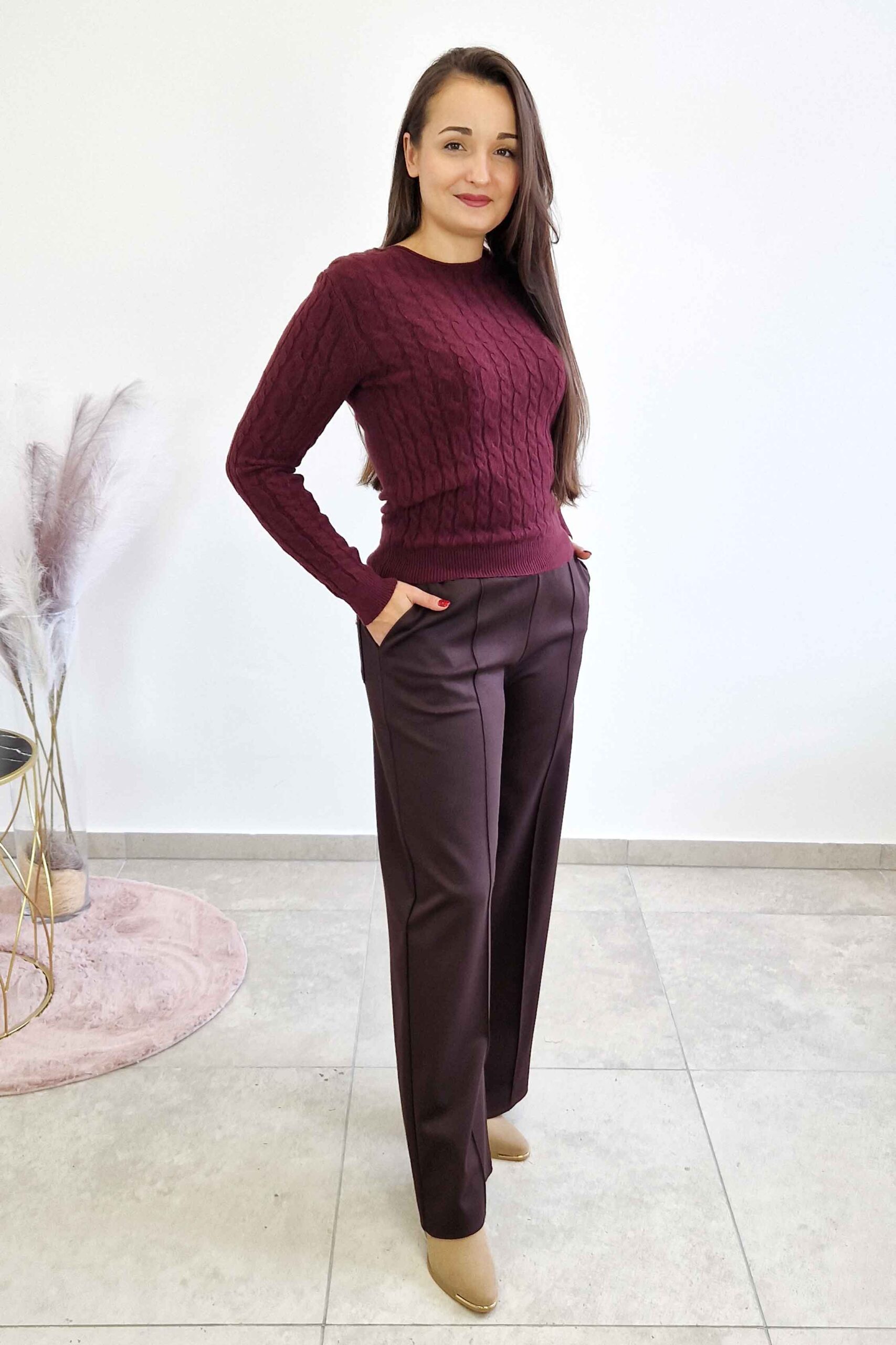 Sweter Damski ze Splotem Warkocz Długi Rękaw Bordowy