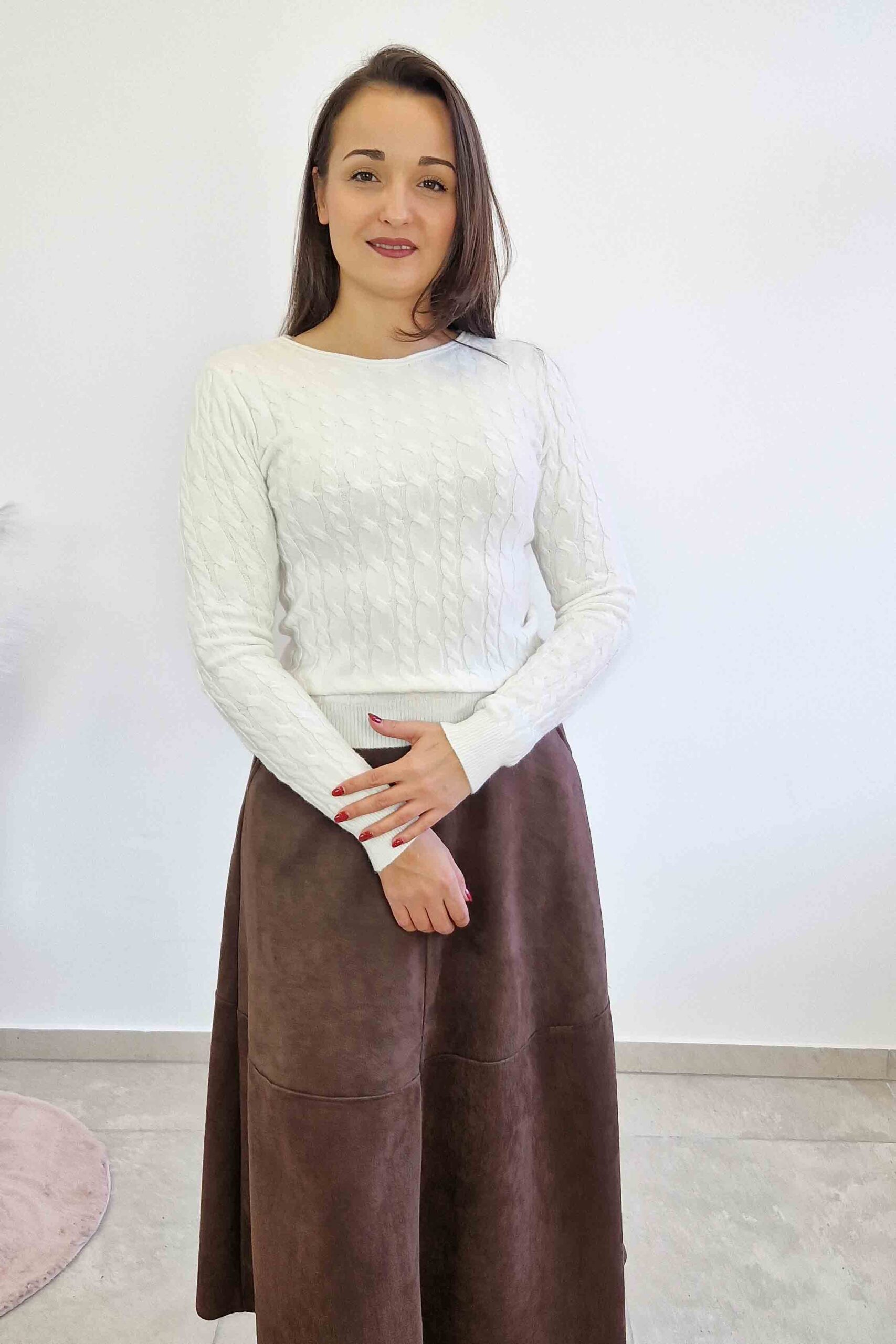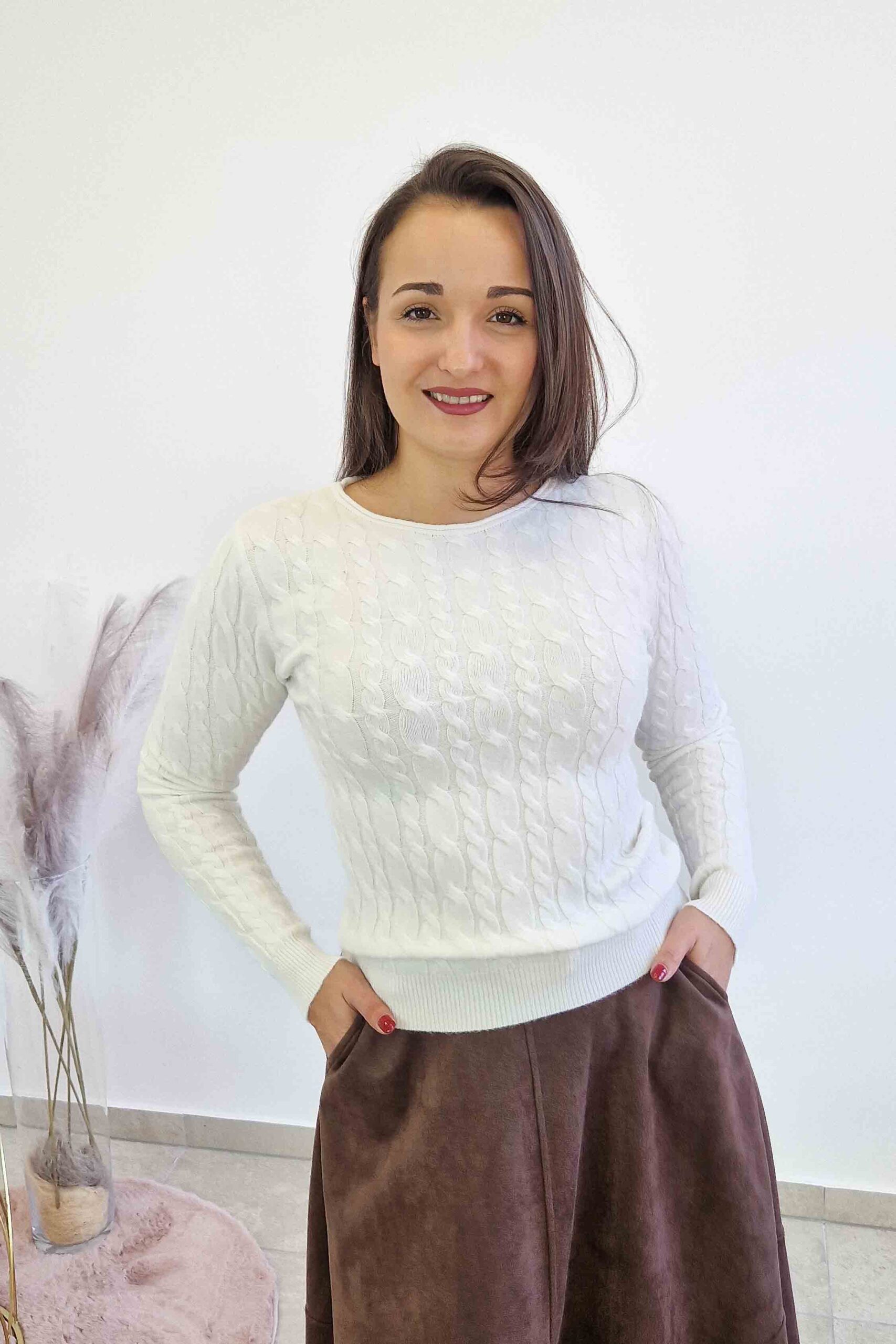 Sweter Damski ze Splotem Warkocz Długi Rękaw Kremowy